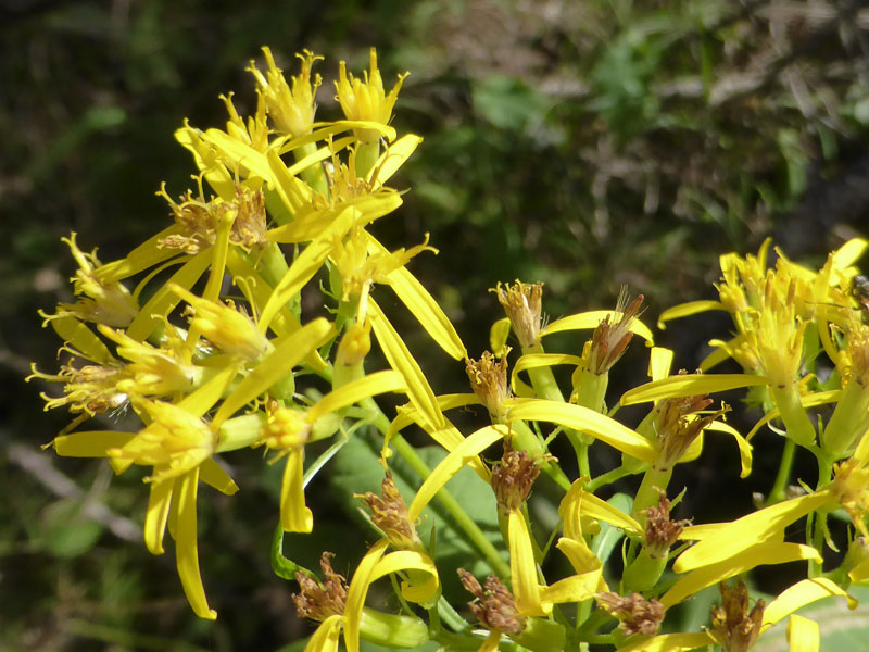 Le séneçon de fuchs se rencontre dans les bois humides. C'est une plante vivace à souche non rampante qui produit des corymbes de capitules semblant incomplets, avec seulement quelques fleurons ligulés disposés irrégulièrement. Les involucres sont beaucoup plus long que large avec huit à dix bractées principales et un calicule avec quatre à cinq bractées fines et écartées. Les feuilles sont toutes rétrécies en pétiole. On le trouve dans une grande partie Est de la France.