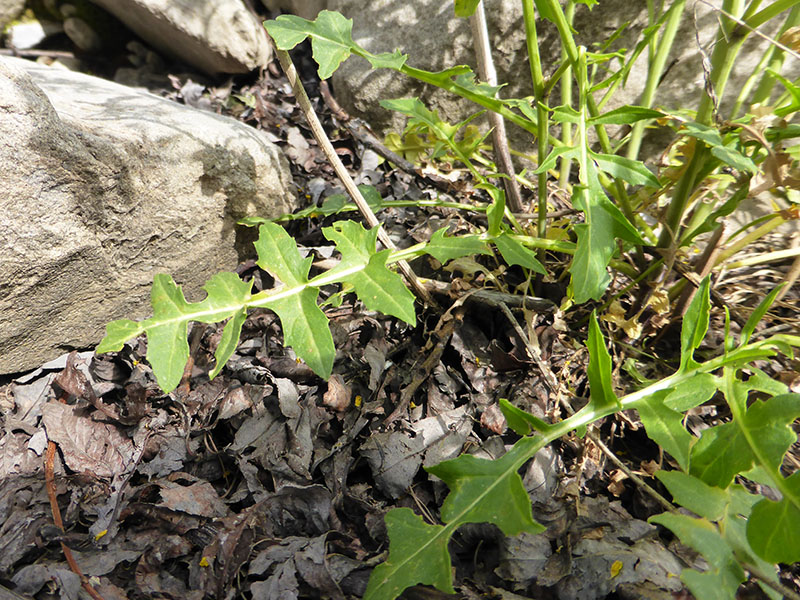 Feuilles pétiolées, roncinées, pennatifides, à lobes nombreux et perpendiculaires à l'axe de la feuille.