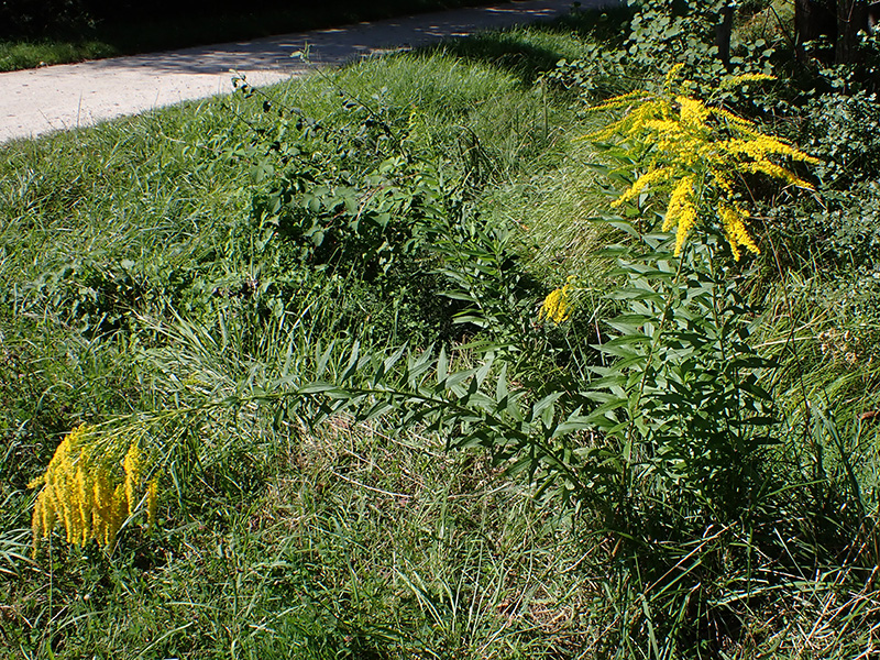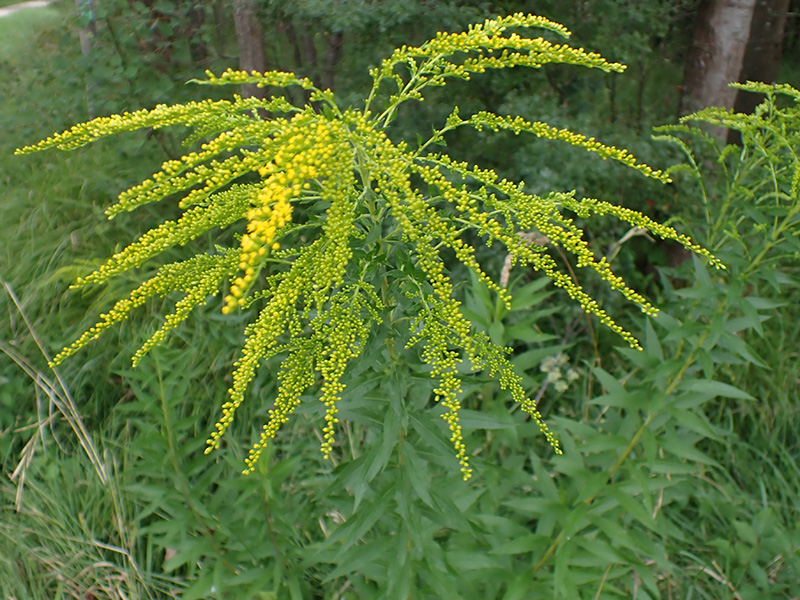 Le solidage du Canada est une grande plante originaire d'Amérique du Nord, elle a été importé pour décorer les (grands) jardins de leurs gerbes dorées pendant tout l'été. Malheureusement elle s'est naturalisée un peu partout en France et est maintenant considéré comme envahissante, du fait de sa grande robustesse, de sa rusticité et de sa faculté à se développer rapidement en ne laissant que peu de place aux espèces endémiques. C'est une plante pionnière qui colonise les terrains tourmentés (déblais, zone de travaux ou d'incendie) et les terrains vagues excepté les zones très sèches ou très humides. Elle produit de grandes tiges souples et très feuillées mesurant jusqu'à 2 m 50 de hauteur. Les feuilles lancéolées sont entières ou peu dentées de 5 à 10 fois plus longues que larges. Elles entourent les tiges du bas jusqu'en haut sans pétiole ou presque sans pétiole. L'inflorescence, terminale, forme des panicules dressées puis retombantes scorpioïdes et unilatérales de minuscules capitules dépassant à peine de l'involucre. C'est une plante vivace produisant de nombreux rhizomes qui se ramifient en automne. A leur extrémité apparait, au printemps suivant, une tige aérienne qui multiplient la plante.