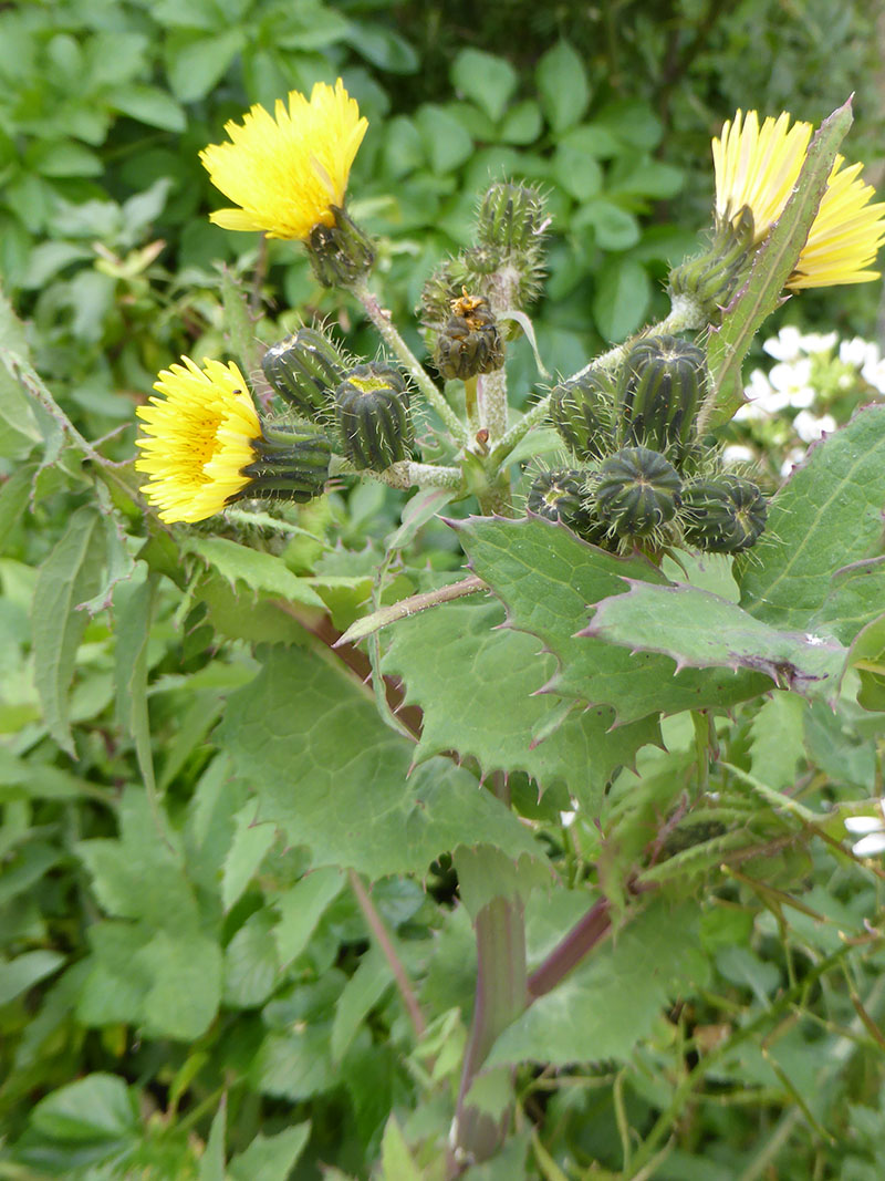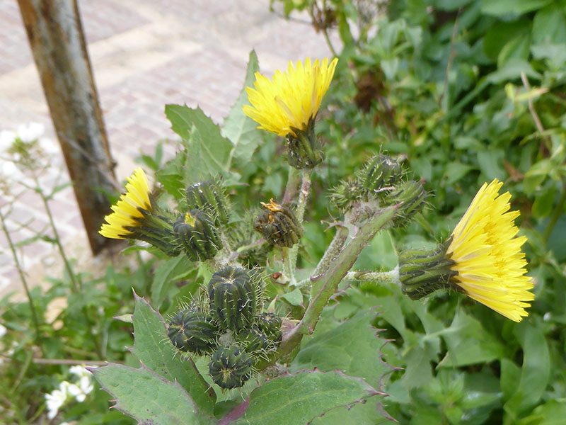 Plante annuelle dressée et peu rameuse, le laiteron maraîcher est une plante très courante dans les lieux cultivés, les friches, les champs et les prés. L'involucre de ses capitules groupés en corymbe est conique avec des bractées poilues glanduleuses ayant une extrémité aiguë. La tige est creuse et contient un latex blanc. Ses feuilles sont molles ce qui le différencie du laiteron rude qui, lui, pique vraiment !