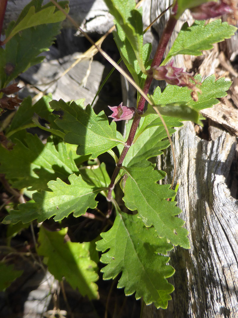 La germandrée petit-chêne est petite plante vivace qui croît surtout sur les terrains calcaires, au bord des bois, sur les coteaux et dans les terrains arides. Les feuilles courtement pétiolées sont caractéristiques par les profondes crénelures qui découpent leurs bords. Elles sont légèrement luisantes sur le dessus et vert pâle en dessous, de consistance ferme et couvertes généralement de petits poils. Les tiges sont pubescentes, droites, presque ligneuses et rameuses. Elle produit des verticilles de 3 à 6 fleurs roses qui forment, par leur ensemble, une inflorescence allongée surtout à maturité. Les calices sont brun rougeâtre avec des dents presque égales plus petites que le tube de la corolle, celle-ci est bilabiée avec les étamines saillantes plus hautes que les pétales supérieurs. C'est une plante rameuse et plus ou moins gazonnante, avec des tiges se dégarnissant de leurs feuilles au fur et à mesure de la croissance et qui s’enracinent par des racines adventives.Autrefois utilisée dans la pharmacopée, c'est une plante toxique pour le foie.
