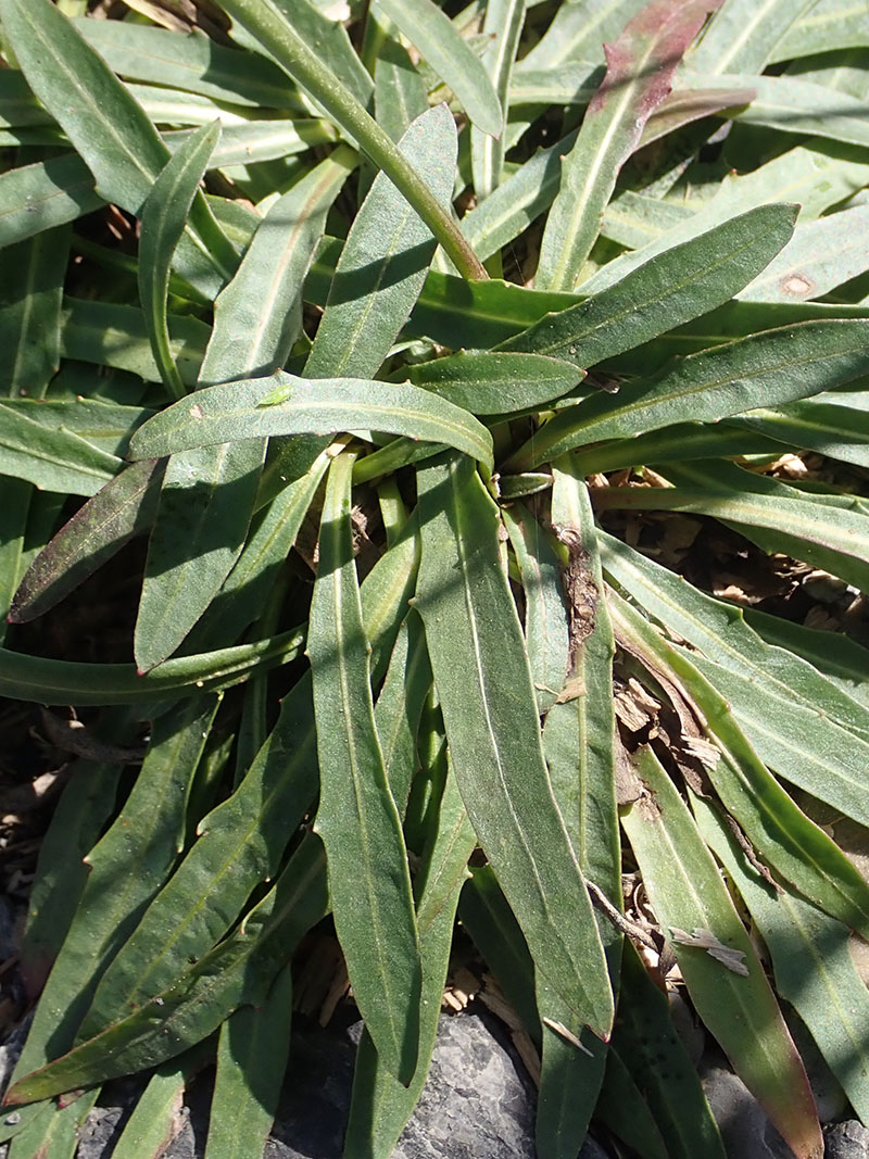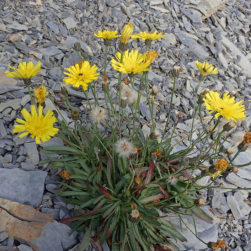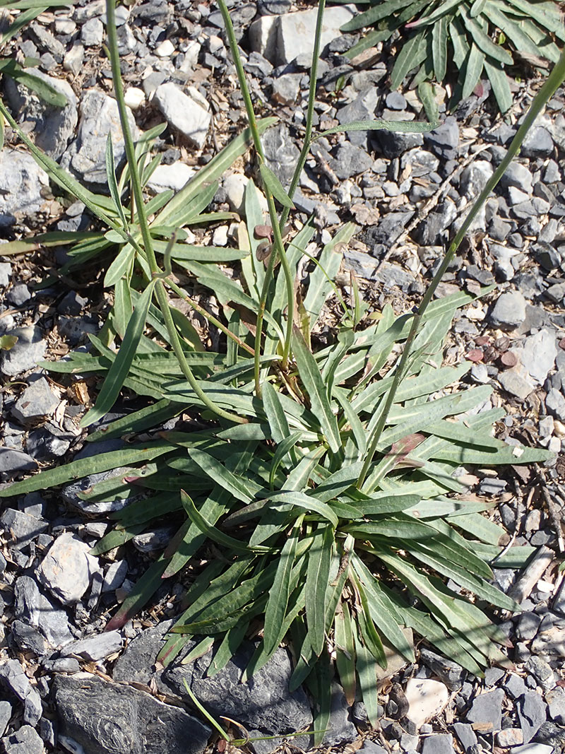 L'épervière à feuilles de statice est une plante que l'on rencontre principalement dans les Alpes parmi les éboulis, les marnes noires, entre les rochers et dans les graviers près des cours d'eau. Elle pousse de l'étage collinéen à l'étage subalpin mais on peut également assez bas près des cours d'eau. Les feuilles sont, pour la plupart, situées à la base de la plante, elles sont nombreuses et forment une rosette. Elle sont très allongées, étroites, entières ou lâchement dentées, glauques et glabres. On peut noter, parfois, la présence d'une ou deux feuilles, identiques à celles de la base le long de la tige florale. Cette dernière ne porte, en général, qu'un seul capitule (plus rarement 3 à 5). L'involucre a des bractées aiguës au sommet, plus ou moins cotonneuses sur leur face externe ; elles sont disposées sur deux rangées, les externes plus courtes. Les fleurs, toutes ligulées ne sont pas ciliées. Les fruits mûrs mesurent environ 3 millimètres (hors aigrette aux poils disposés sur un seul rang). C'est une plante vivace qui se multiplie le plus souvent par la formation de rameaux souterrains qui donnent naissance chacun à une rosette de feuilles apparaissant à quelques centimètres de la souche principale.