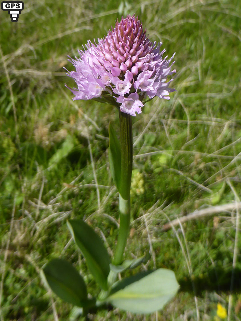 Cette plante est peu commune et visible uniquement dans les prairies montagneuses (1000 à 2500 mètre d'altitude). Les fleurs roses de cette orchidée forment un épi très dense et conique. Chaque fleur possède un éperon court dirigé en bas, des sépales externes effilés et terminés en spatule. Le labelle rose trilobé est moucheté de points plus foncés. Cette plante a besoin de lumière et ne pousse que sur sols calcaires.