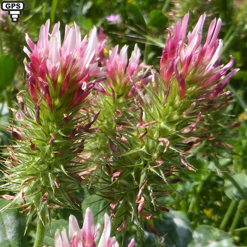 Le trèfle rougeâtre préfère les terrains calcaires. Ses fleurs on un calice à dents très inégales, l'une dépassant largement les autres. Ses feuilles ont trois folioles oblongues marquées de nervures fourchues.