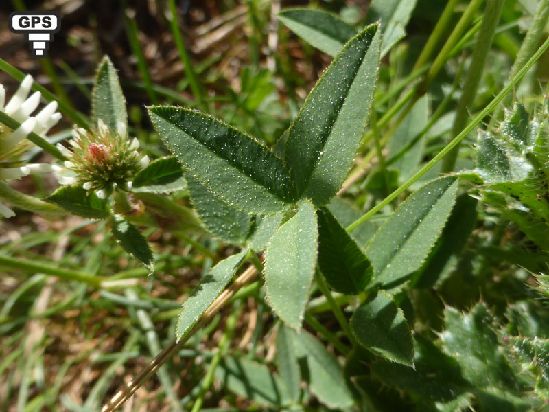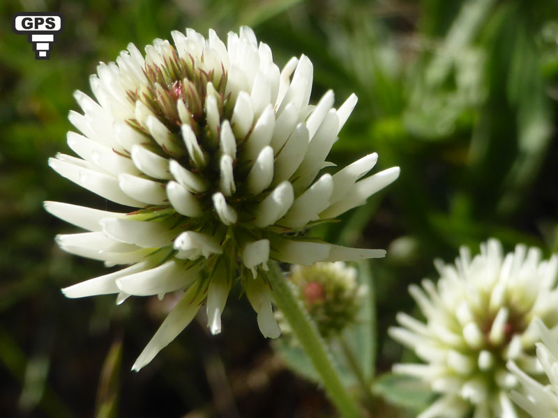 Le trèfle des montagnes est une plante vivace des alpages et pelouses sèches des montagnes, elle est présente dans l'Est, le Centre et le Midi de la France. Son port est érigé et sa tige couverte de poils. Les feuilles supérieures, toutes alternes, ont des folioles denticulées le plus souvent ovales-allongées, sans poils sur la face supérieure et couvertes de petits poils sur la face inférieure. Il produit des fleurs blanches en têtes ovoïdes serrées portées sur un rameau plus long que la feuille à l'aisselle de laquelle ils se trouvent. Le calice a des dents presque égales et dressées. Chaque fleur est placée par un long pédoncule. C'est une plante à tiges fleuries dressées ou redressées, à tige souterraine épaisse et rameuse, produisant des bourgeons qui perpétuent la plante.
