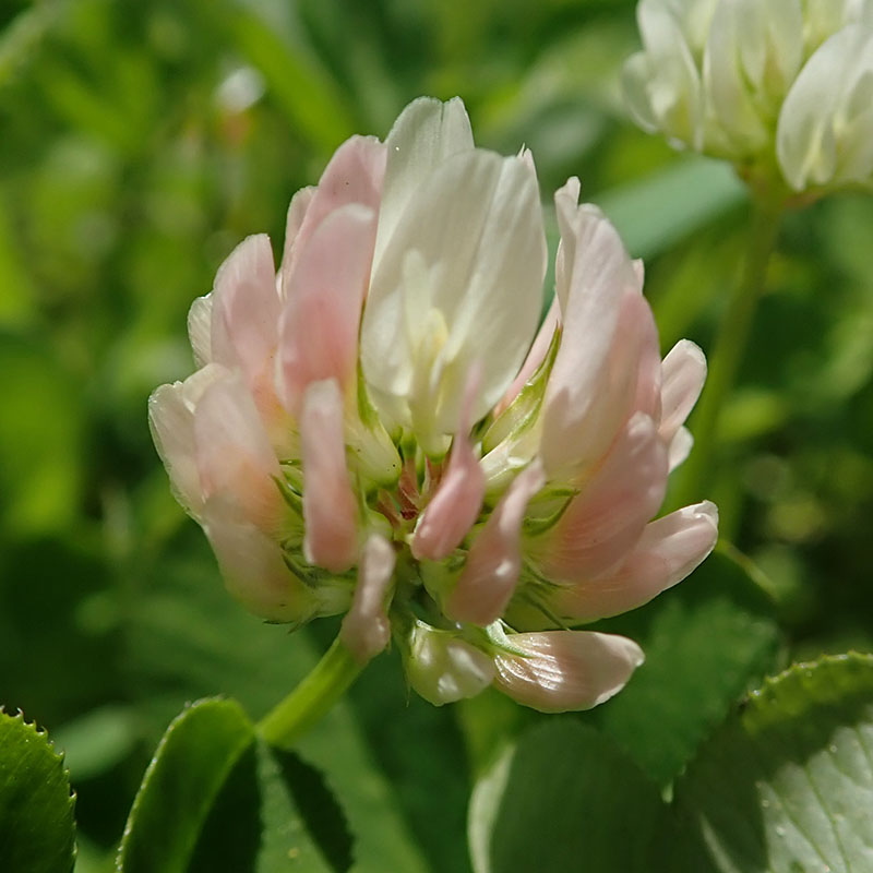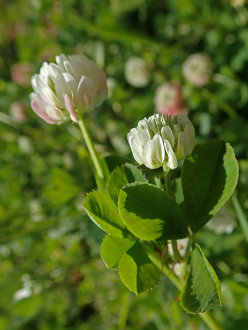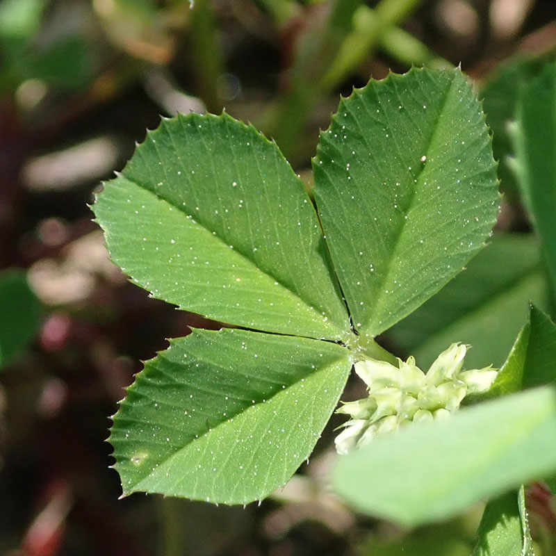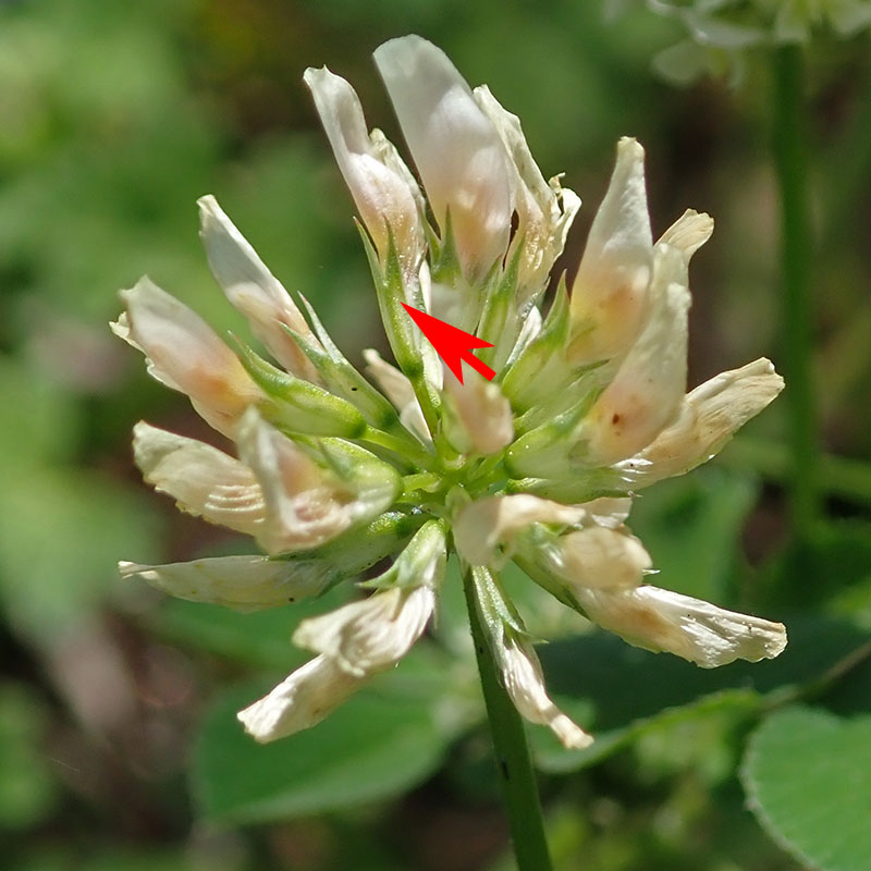 Le trèfle blanc est une plante plus haute avec des inflorescences plus grosses. Ses folioles porte des «V» blancs. La comparaison des calices évite toute confusion : ceux du trèfle blanc ont des dents presque égales.