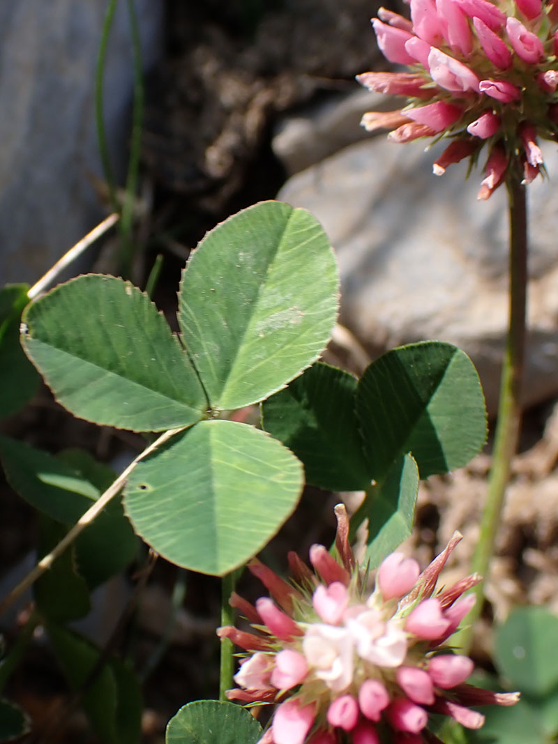 Le trèfle de Thal est une plante vivace que l'on trouve de l'étage subalpin à l'étage alpin dans les pâturages, les éboulis, les endroits rocailleux des Alpes, des Pyrénées et du Jura surtout sur terrain calcaire. Les feuilles longuement pétiolées partent toutes de la base des tiges. à leur baseles on trouve des stipules blanchâtres et pointues. Les folioles sont un peu plus longues que larges et bordées de denticulations en forme de très petites épines ; leurs nervures sont plus marquées sur la face inférieure. Les fleurs, d'abord blanc-rosé, deviennent franchement rose-foncé en fin de floraison ; elles sont groupées en têtes globuleuses tenues par des pédoncules partant de la base de la plante et plus longs que les feuilles. Le calice terminé par de longues dents est glabre. Cette plante pousse en touffes gazonnantes, ses tiges souterraines sont rameuses certaines produisant des tiges fleuries et d'autres ne portant que quelques feuilles. Elle se perpétue par des bourgeons nés sur les divisions de la tige souterraine....Sa racine sucrée, à goût de réglisse, constitue une petite friandise lors de balades ou de randonnées (on peut aussi en faire des décoctions recommandées pour les maladies des bronches) (Wikipedia)