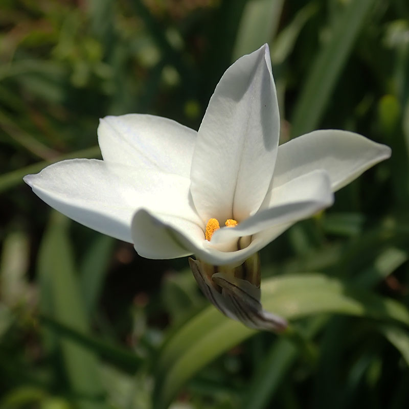 L'iphéion est une plante vivace originaire d'Amérique du Sud qui s'est implantée et naturalisée près du pourtour méditerranéen. Elle pousse en touffe avec de nombreuses feuilles plus ou moins molles et rampantes. Elle est entièrement glabre. L'iphéion produit de belles fleurs blanches ou bleutées assez grandes. Celles-ci sont uniques au bout d'une tige dressée et relativement courte. Les tépales sont soudés à la base et forme par un petit tube avec les étamines et le style qui n'en dépassent pratiquement pas. Le revers des tépales est marqué d'une ligne longitudinale brune. On la trouve dans les prés et sur les talus herbeux et très ensoleillés. Elle se reproduit par l'apparition de caïeux autour du bulbe principal ou par ses graines.