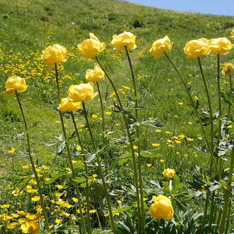 Le trolle d'Europe est une belle plante vivace des prairies et pâturages humides des montagnes. Il y forme des massifs assez denses de feuilles au limbe découpé en éventail d'un vert plus ou moins sombre en dessus, plus clair en dessous. Les tiges florales dressées dépassent largement la masse feuilles et, à leur sommet, dominent de grandes fleurs jaunes au calice sphérique formé de 6 à 15 sépales pétaloïdes. On compte le même nombre de pétales linéaires très petits cachés à l'intérieur du calice. Le fruit est formé de 15 à 25 carpelles bruns ou noirâtres ridés dans leur partie supérieure. C'est une plante entièrement glabre à tige souterraine courte, portant de nombreuses racines adventives assez épaisses et très allongées.La plante est légèrement vénéneuse, car contenant un alcaloïde, la proto-anémonine. (Wikipedia)