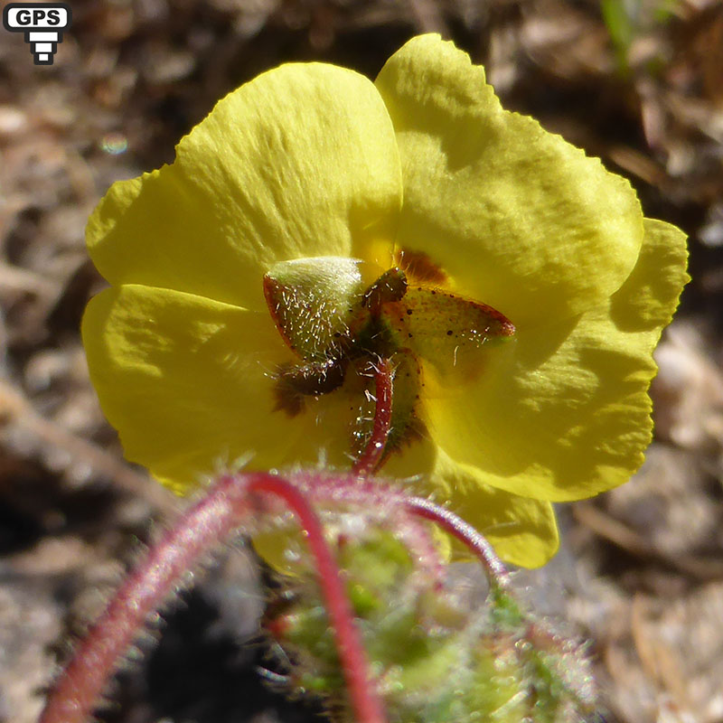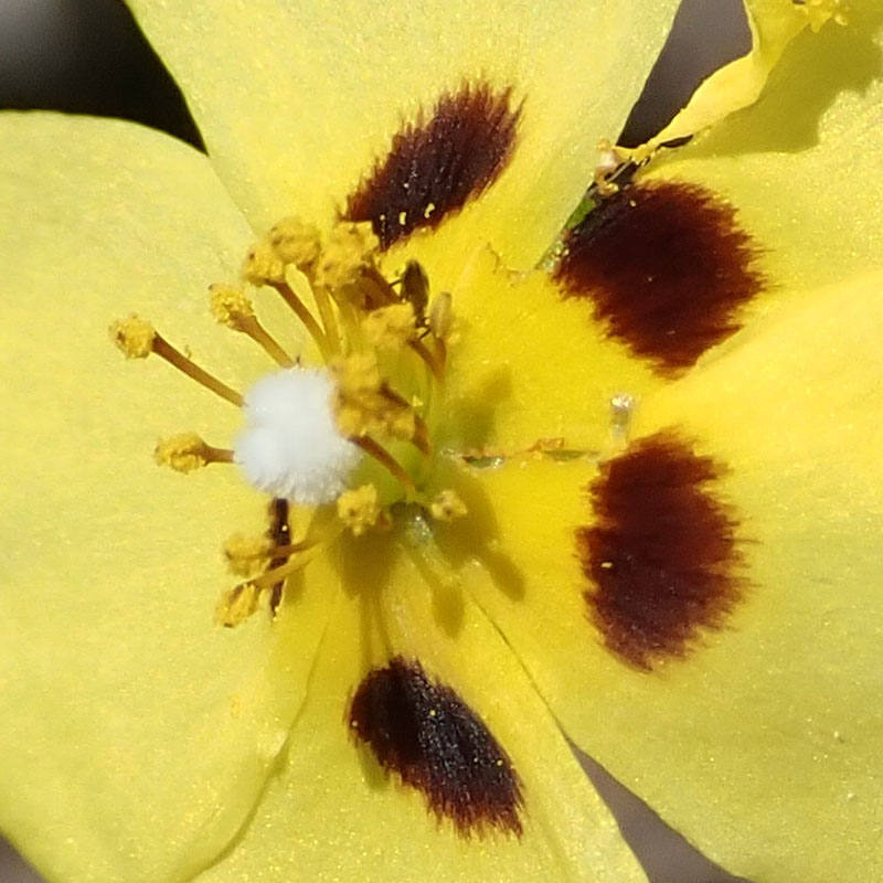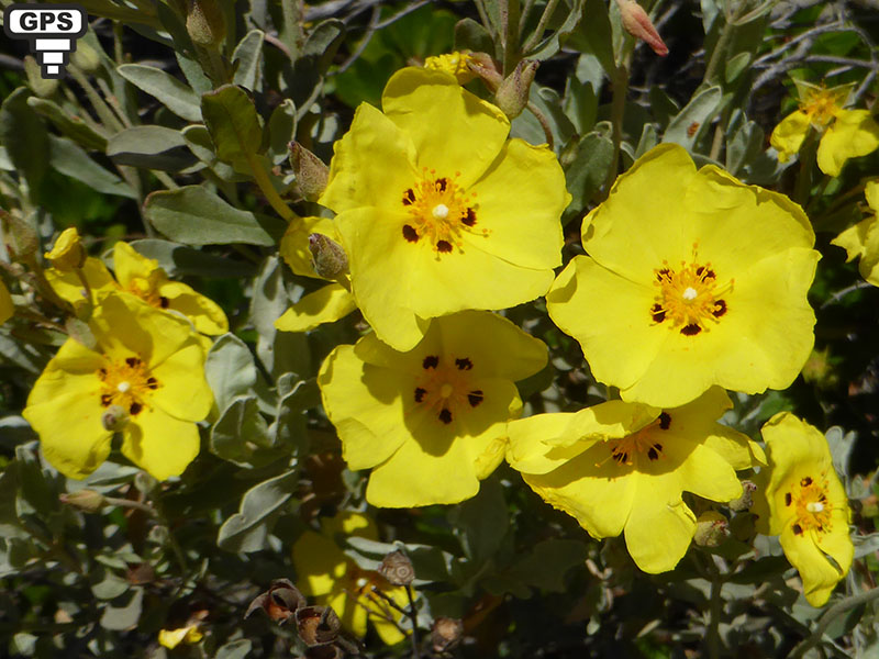 Petite plante aimant la chaleur et les sols siliceux, l'hélianthème taché se rencontre dans les lieux ensoleillés dans une grande partie de la France. Comme son nom l'indique, les pétales jaunes des fleurs sont tachés à la base de noir rougeâtre, ce qui facilite son identification. Les feuilles, les tiges et les calices sont velus. Les étamines entourent le pistil sur une seule ligne.