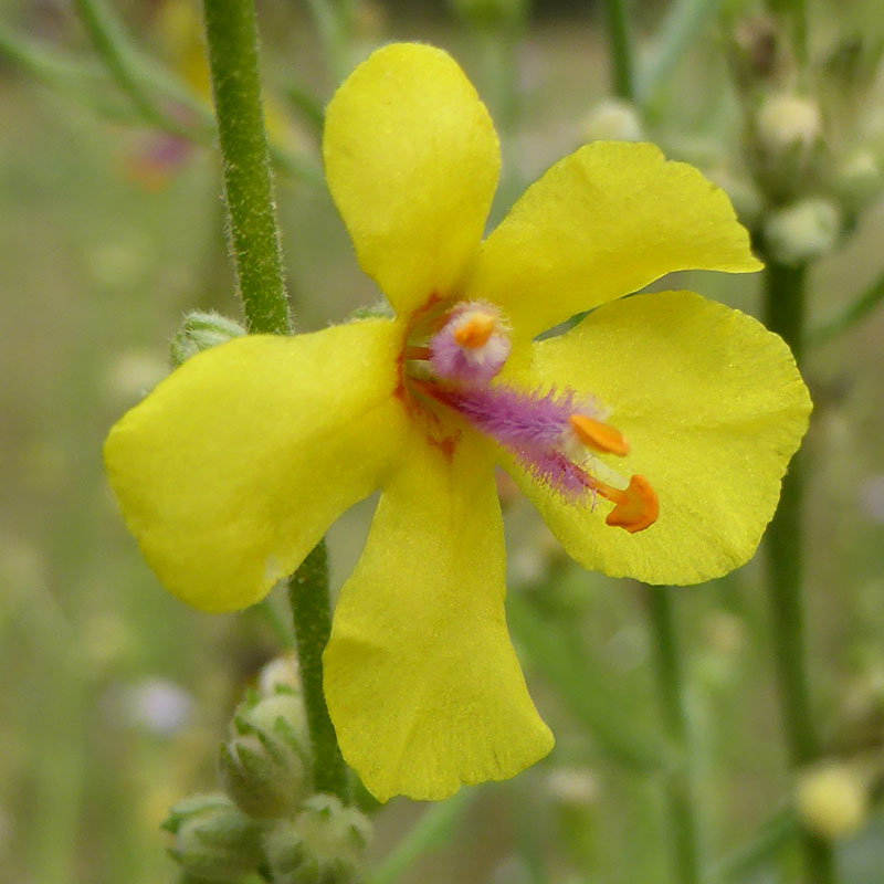 La molène sinuée a aussi des étamines couvertes de poils violets, cependant ses feuilles sont couvertes de poils cotonneux, elles sont sinuées ou pennatifides (celles de la base) et c'est une plante peu rameuse.