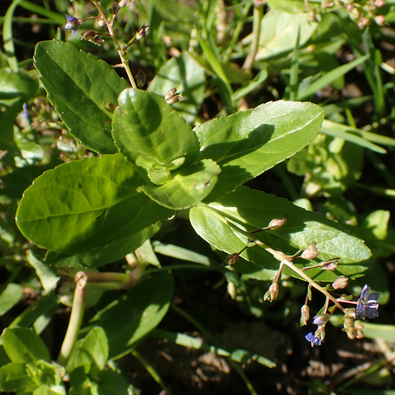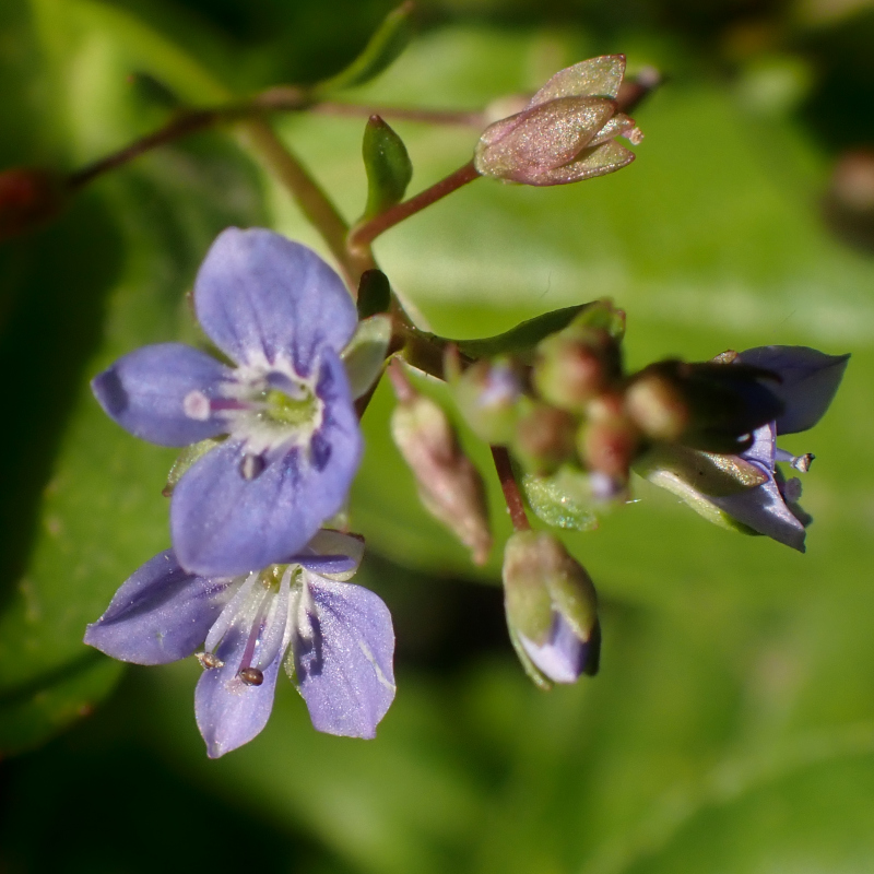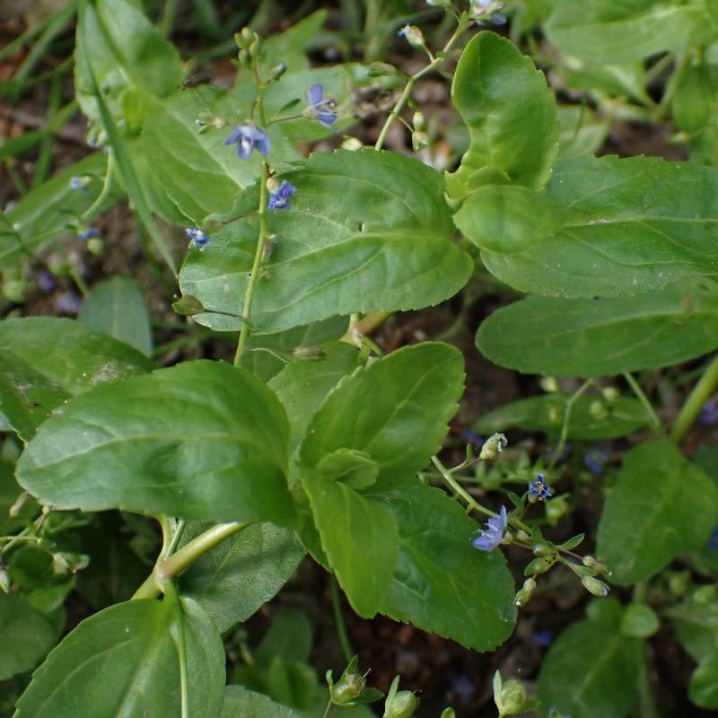 La véronique des ruisseaux est une plante plus connue sous le nom «Cresson-de-cheval», croît dans les fossés, au bord des cours d'eau ou des étangs, et dans tous les endroits humides dans presque toute la France métropolitaine. C'est une plante entièrement glabre au feuillage assez dense. Les feuilles sont toutes opposées, tenues par un pétiole plus ou moins court. Le limbe, de contour ovale ou elliptique, est épais et finement crénelé sur les bords. Les fleurs, très petites, sont disposées en grappes lâches et redressées, généralement opposées et qui prennent naissance à l'aisselle des feuilles. La fleur est tenue par un pédicelle mince et étalé plus long que le calice. Ce dernier est constitué de 4 sépales égaux, plus long que le calice. La corolle est juste un peu plus longue que le calice. Le fruit mûr, presque rond et à peine échancré au sommet est entouré par le calice persistant. Le style, également persistant, forme une pointe de 2 mm au sommet du fruit mûr. C'est une plante vivace, à tiges couchées et enracinées à leur base. Des bourgeons adventifs issus des tiges s'enracinent quand la plante s'affaisse à l'automne, ce qui multiplie la plante qui peut former des colonies importantes quand les conditions sont favorables.Autrefois consommé comme du cresson, mais c'est une plante amère. Elle fut employée pour lutter contre le scorbut.