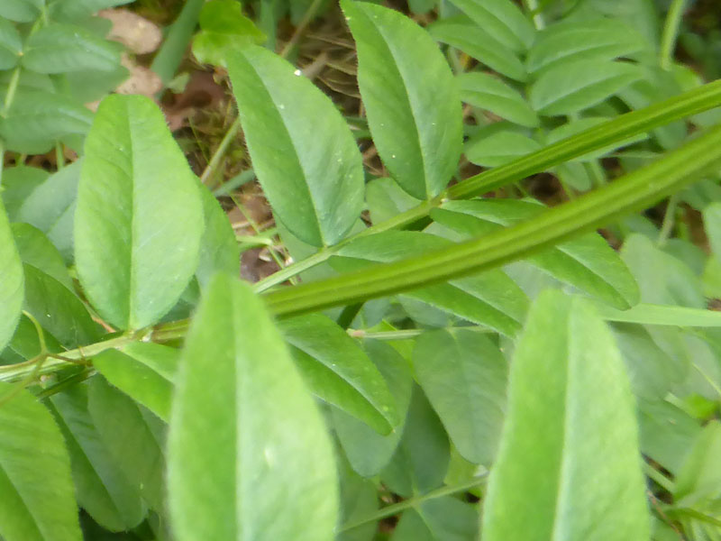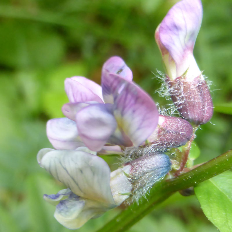 La vesce des haies est une plante grimpante très courante dans les bois et sur le bord des chemins. Ses fleurs sont groupées (par 2 à 5) en haut d'un pédoncule assez long. Le calice à dents inégales est poilu. La corolle est glabre en dégradé de rose avec des veines bleutées ou pourpres. Les feuilles sont terminées par une vrille.