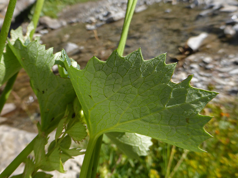 Feuilles grosses, rondes ou en coeur, glabres, dépourvues d'oreillettes, dentées, celles de la base longuement pétiolées