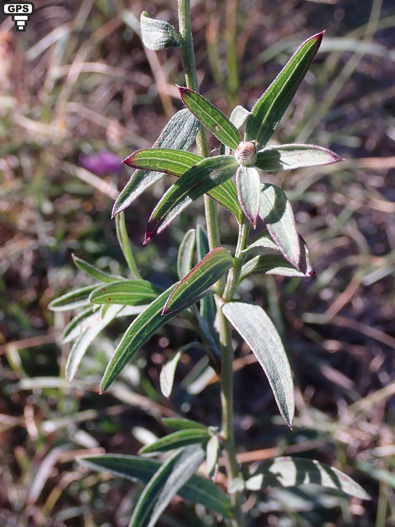 Feuilles entières, lancéolées, étroites et couverte d'un duvet blanchâtre