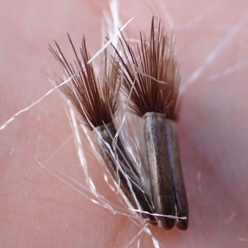 Fruits akènes bruns et lisses, presque cylindriques à aigrettes rousses