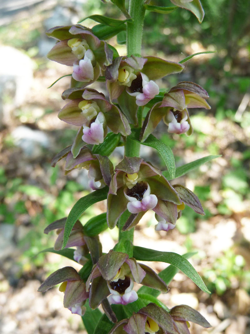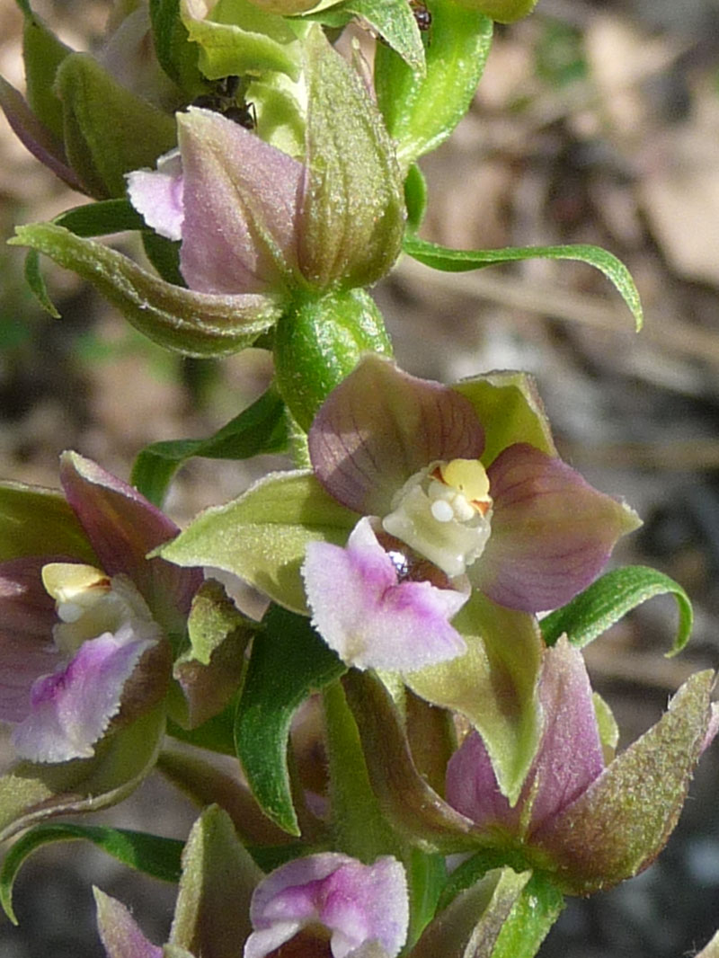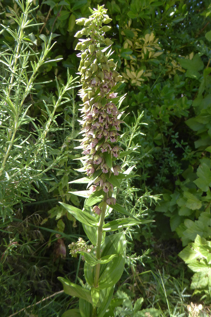 L'épipactis helleborine est assez commun dans toute la France. Il croît dans les bois et les lisières où ses fleurs verdâtres à l'extérieur et rosâtres sur l'intérieur se développent pendant l'été. C’est une plante vivace à tige souterraine épaisse et courte munie de nombreuses racines. La tige forme chaque année un bourgeon qui donne naissance à la tige florale. L'inflorescence de l'épipactis helléborine est une grappe (parfois très dense) de petites fleurs composées d'un labelle rose portant deux petites bosses lisses sur l'hypochile, de deux pétales aigus rosâtres et de trois sépales verts également aigus. Les bractées égalent les fleurs en haut de la plante, alors qu'en bas, elles les dépassent très largement. C'est une plante vivace robuste, pubescente au sommet, à souche courte.