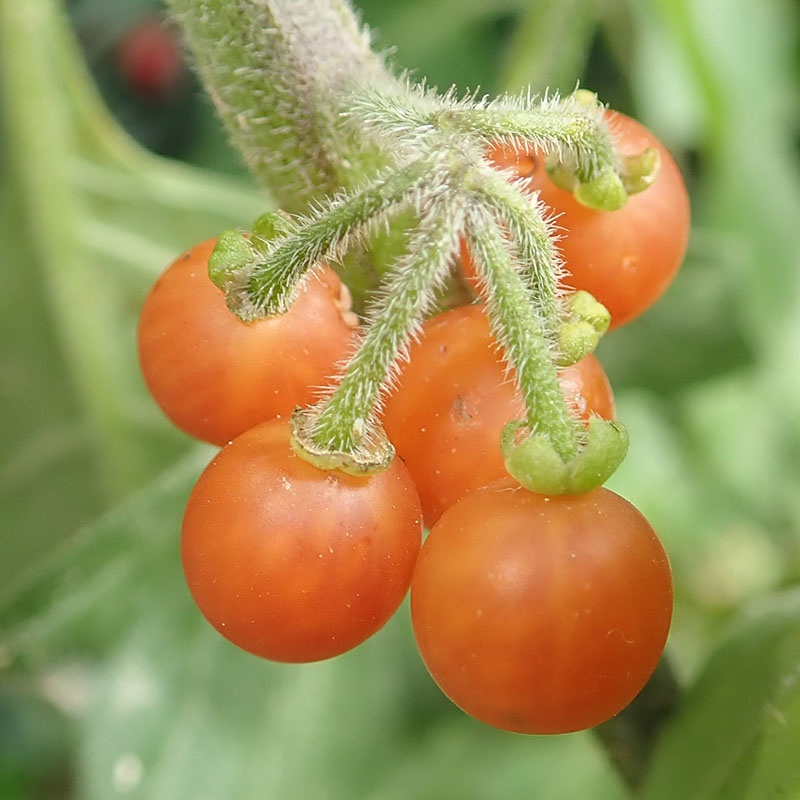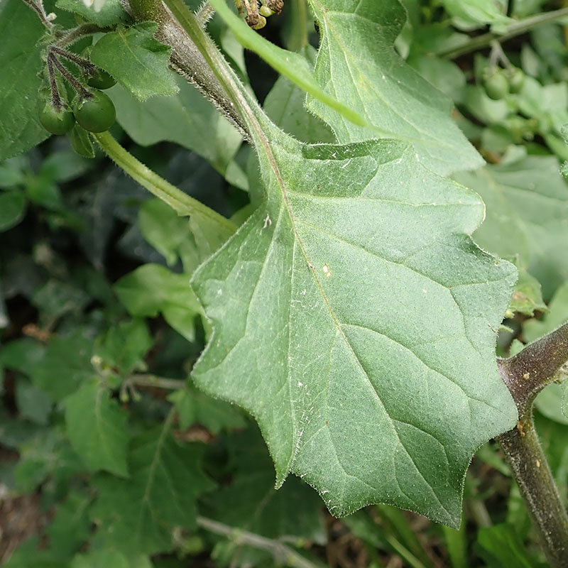 La morelle velue est une plante annuelle qui se rencontrent dans les champs, les décombres ou au bord des chemins plutôt dans partie Sud de la France. Les feuilles, toutes pétiolées, ont un limbe généralement aigu au sommet, en coin à la base, et dont les bords sont plus ou moins dentés ou sinués. Les fleurs sont disposées en cymes ombelliformes de trois à cinq fleurs sur des pédoncules qui se renversent à maturité. Ceux-ci sont très velus les calices aussi. La corolle comporte cinq pétales plus ou moins renversés qui dépasse largement le calice à lobes arrondis. Comme toute les «solanum» les cinq étamines ont un filet très court et des anthères étroitement rapprochées les unes des autres, formant une sorte de tube entourant le style. Ces fleurs donnent des baies globuleuses d'abord vertes, puis rouge à maturité. La reproduction se fait par l'intermédiaire d'oiseaux se nourrissant de ces baies.Plante toxique contenant de la solanine. (Wikipedia)