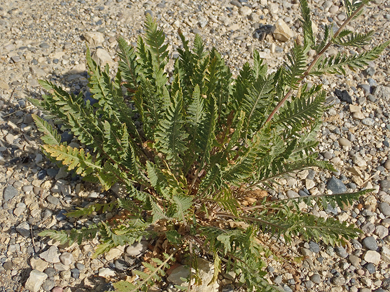 L'achillée à feuilles de fougère (ou achillée filipendule) est une grande et belle plante originaire du Caucase que l'on trouve surtout dans les jardins mais qui s'en est largement échappée et que l'on rencontre aussi dans les terrains-vagues, au bord des chemins et dans les lieux incultes pourvu qu'ils soit secs, bien drainés et surtout exposés au soleil. Les tiges droites, anguleuses et cannelées forment une touffe dressée. Les feuilles sont nombreuses, de contour longuement lancéolées, finement découpées, de couleur vert argenté et très odorantes. Les inflorescences sont des ombelles (ou plus rarement des corymbes) denses et irrégulières de petits capitules d'un jaune intense qui gardent leur couleur plusieurs semaines. C'est une plante vivace au port buissonnant dont la racine est un rhizome non traçant.