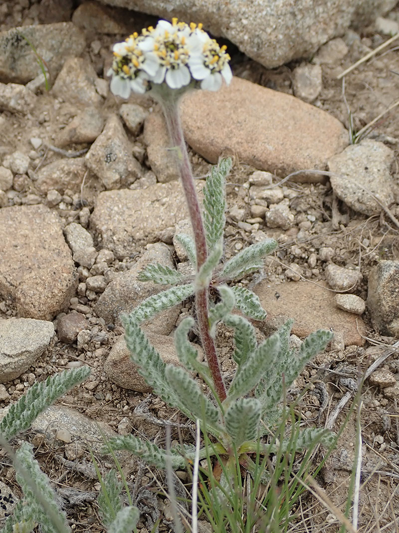 Plante montagneuse des Alpes, l'achillée naine pousse dans les éboulis et les pierriers à partir de 1700 mètres d'altitude. Elle produit des capitules, avec fleurons externes ligulés, réunis en corymbe compact. Les involucres sont hémisphériques et laineux avec des folioles lancéolées, bordées de brun foncé.