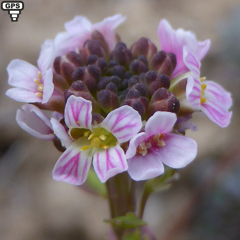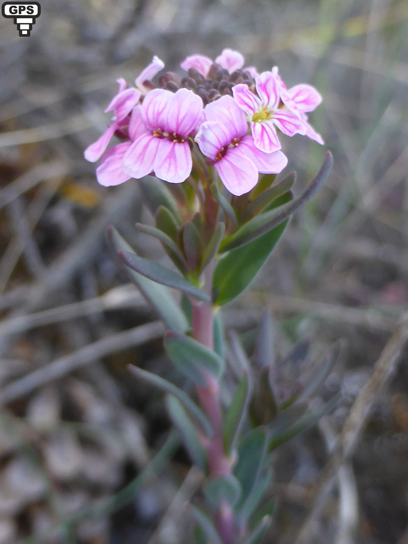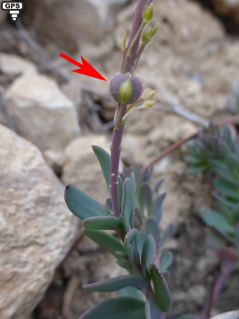 Cette petite plante est caractéristique des parois et rochers calcaires. Ses fleurs sont petites, de couleur rose. Ses fruits bicolores sont des silicules rondes.