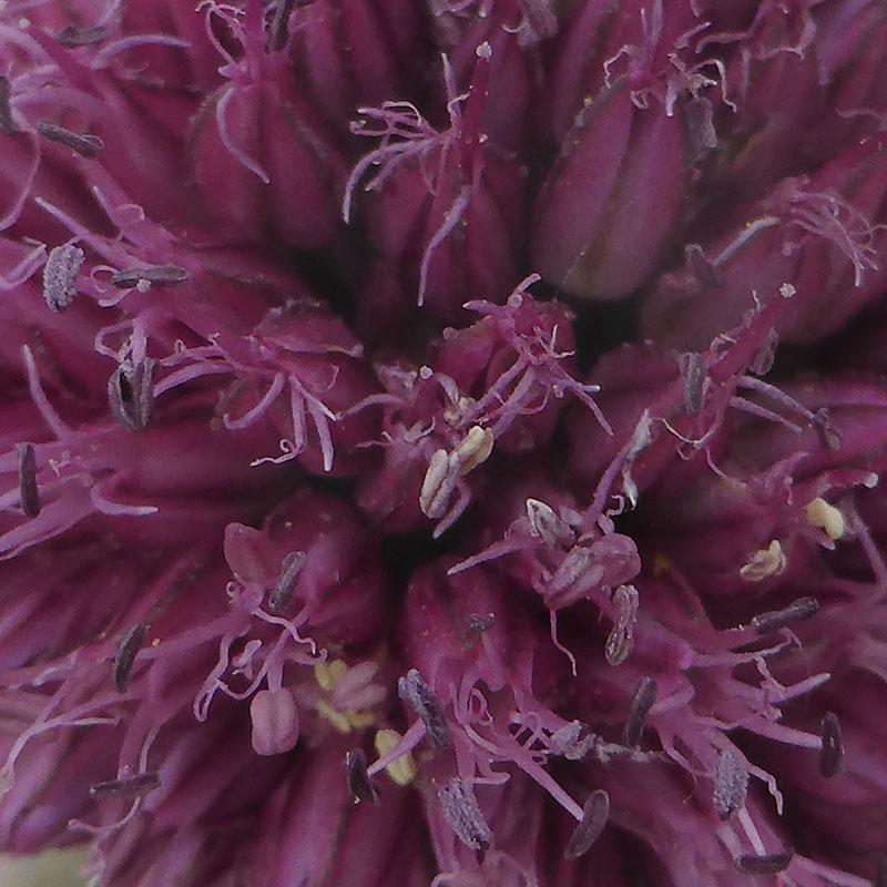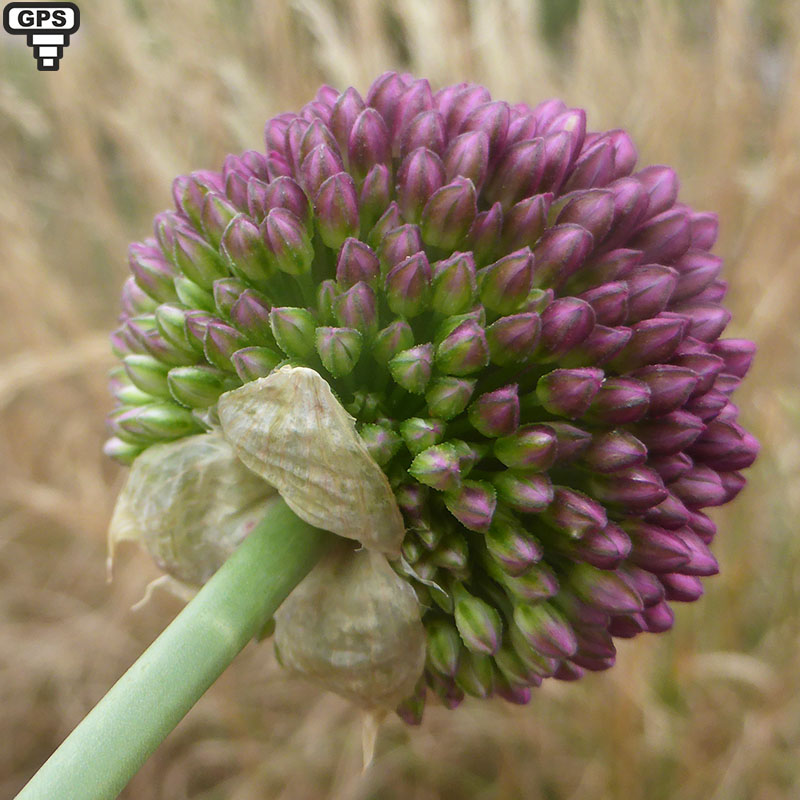 L'ail à tête ronde produit une ombelle dense et sphérique de fleurs pourpres. Les étamines dépassent des fleurs, elles ont des anthères d'abord blanc-jaune puis bleu-gris. On le trouve dans des lieux secs cultivés ou incultes dans presque toute la France.