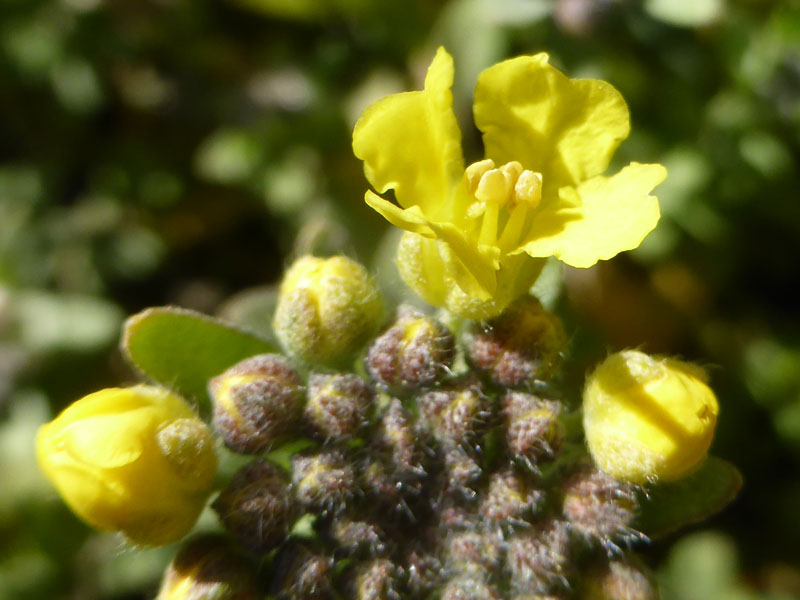 Cette petite plante produit des grappes fructifères serrées fleurissant d'abord par l'extérieur. Les pétales sont échancrés ce qui la différencie du passerage alpestre. On la trouve dans les zones rocailleuses.