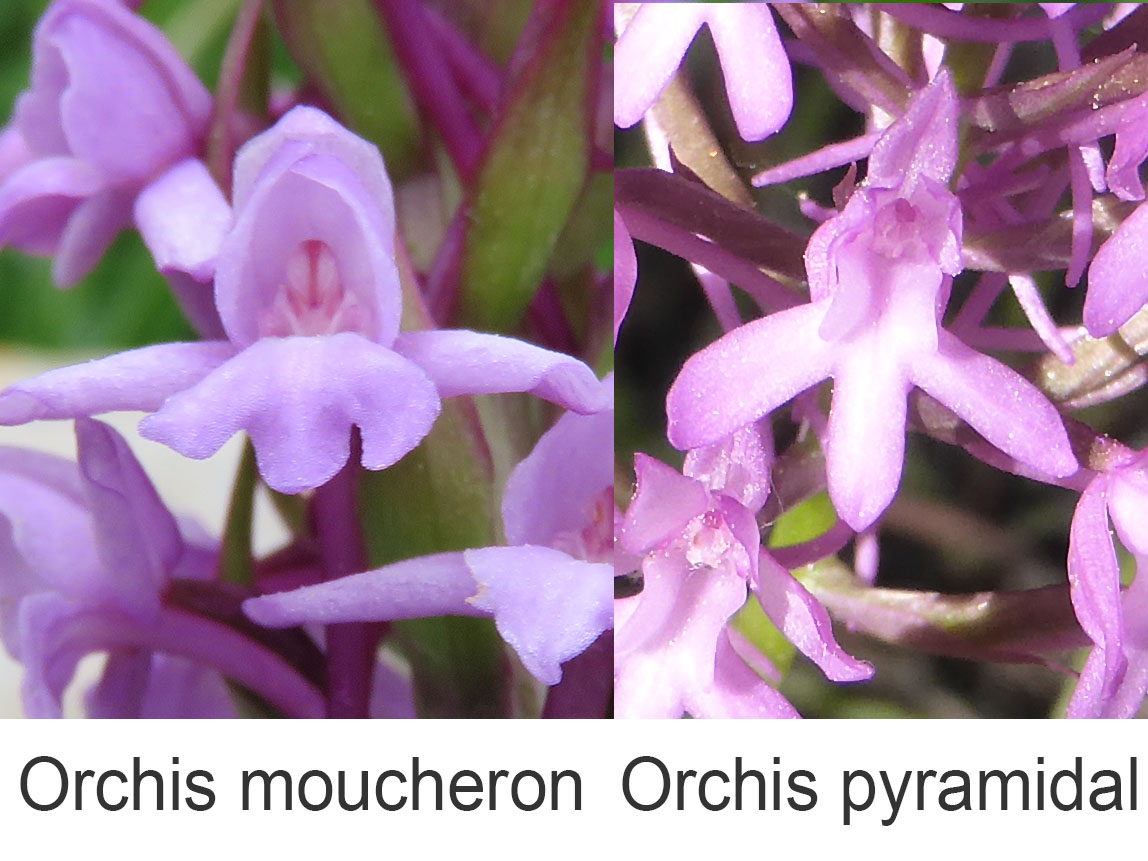 Différence entre les labelles de l'orchis moucheron et de l'orchis pyramidal