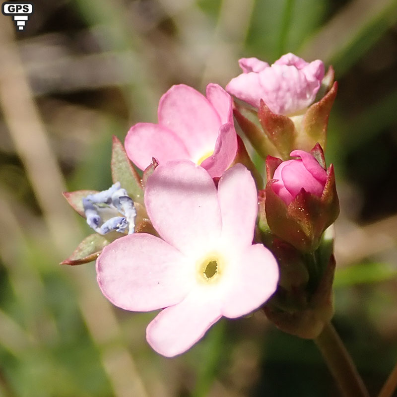 Cette très discrête plante annuelle produit une petite rosette de feuilles, du centre de laquelle s'élèvent une ou plusieurs hampes florales grêles portant de petites grappes de quatre à dix fleurs. Celles-ci sont soit blanches soit roses avec tous les intermédiaires possibles. La corolle est en tube à la base et présente cinq lobes dans sa partie externe. Le calice accrescent est glabre avec des sépales triangulaires, plus courts que le tube de la corolle. On rencontre cette plante dans les bois clairsemés et les pâturages des montagnes du Sud-Est de la France.
