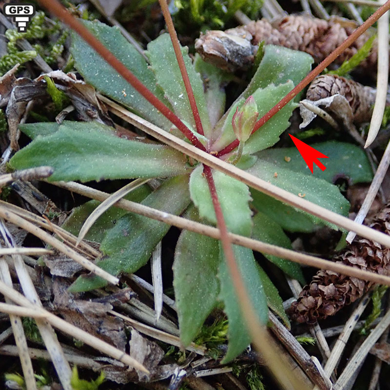 Feuilles en rosette radicale, oblongues- lancéolées, dentelées, pubérulentes