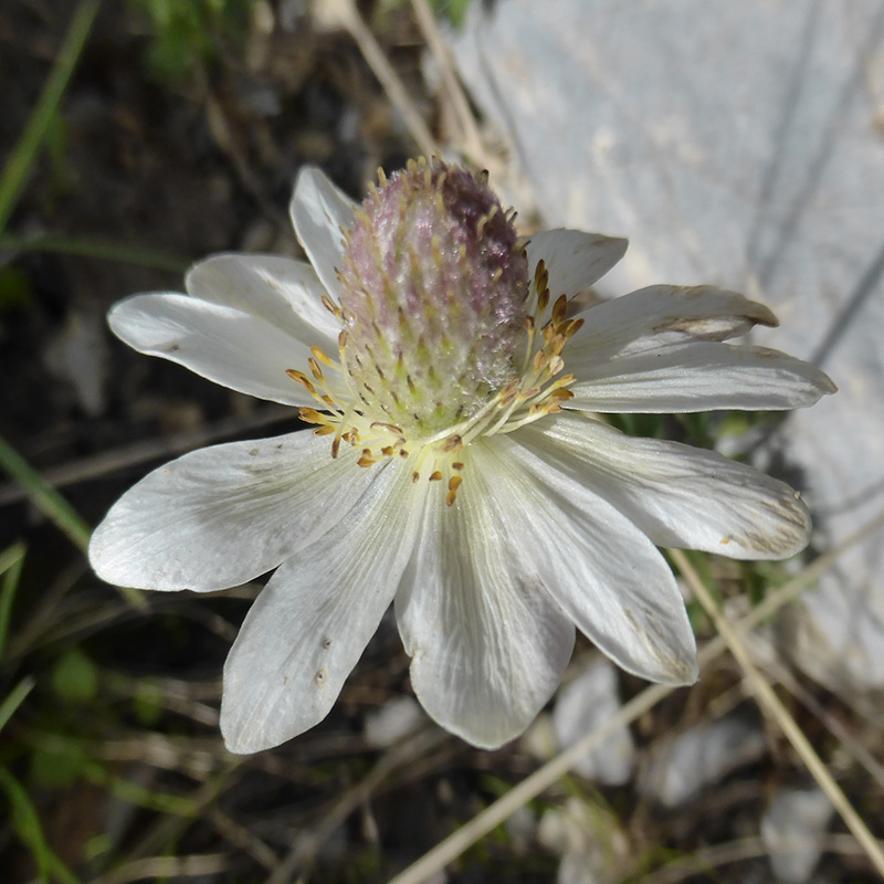 Plante de haute altitude, l'anémone du Mont Baldo produit de belles fleurs blanches avec un pistil se développant en forme de fraise. On la rencontre dans les prairies rocailleuses et dans les éboulis au dessus de 1800 mètres uniquement dans les Alpes du Sud.