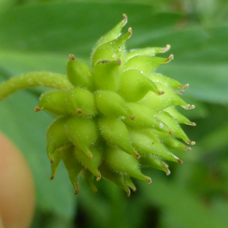 Akènes elliptiques, pubescents , regroupés en infructescence penchée