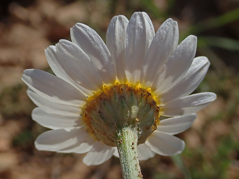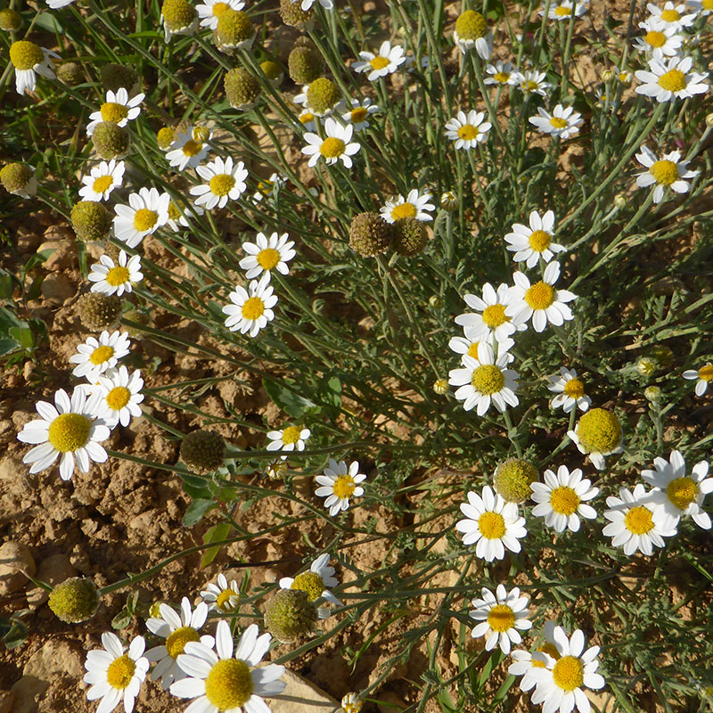 L'anthémis des champs (nom féminin) une plante peu odorante dont les tiges ne dépassent pas 50 cm de longueur, elle est répandue dans les cultures, au bord des chemins et dans les espaces sableux, un peu partout en France métropolitaine. Elle produit des capitules depuis le mois de mai jusqu’au mois de septembre. Les feuilles moyennes sont une ou deux fois divisées en lobes étroits et aigus au sommet. L'ensemble de la plante est tomenteux. Les fleurs tubulées jaunes ont un tube aplati et dilaté à la base. L'involucre est composé de bractées membraneuses sur les bords, marquée d'une côte verte longitudinale et au sommet élargi et arrondi. Les fleurs tubulées fanées forment une masse très bombée presque sphérique, et les fleurs en languette persistante deviennent plus ou moins renversées. Les fruits murs mesurent de 1,5 à 2 millimètres de largeur ; ces fruits sont lisses avec 10 côtes longitudinales situées à leur pourtour. C'est une plante annuelle, tomenteuse à tige fleurie rameuse et à racine principale développée.Les fleurs sont fébrifuges; la plante est vermifuge et anti-inflammatoire ; on l’emploie en gargarismes. (Flore de Bonnier)