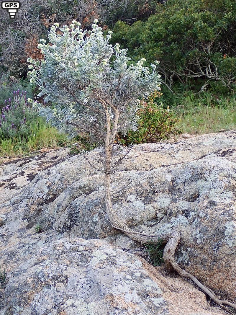 La barbe-de-Jupiter est une plante vivace, ligneuse et halophile, protégée au niveau national. On la trouve sur les îles d'Hyères, la Corse, ainsi que dans le Massif des Maures. Ses tiges sont dressées et portent des rameaux aux feuilles imparipennées couvertes de petits poils leur donnant un aspect argenté. Ses fleurs sont très rapprochées et très nombreuses, elles sont regoupées en une sorte de capitule entouré de bractées linéaires. Chaque extrémité de rameaux porte de un à quatre de ces capitules. Les corolles sont de couleur jaune souffré. La barbe-de-Jupiter développe une profonde racine pivotante infiltrée dans les rochers lui permettant de «s'arrimer» dans les zones venteuses où elle vit et aussi de repousser après un incendie. Dans son biotope cristallin, elle est souvent accompagnée de la passerine hérissée (Thymelaea hirsuta).