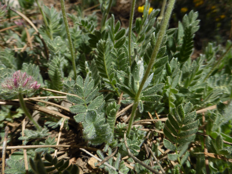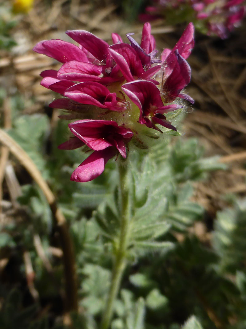 Cette plante velue et hérissée pousse en touffe dans les lieux herbeux et rocheux d'altitude. Ses fleurs sont pourpres et produisent des gousses oblongues et acuminées contenant une 1 graine ovoïde.
