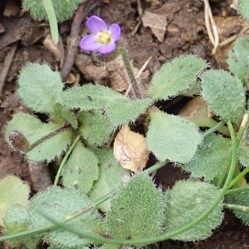 L'arabette de printemps est une petite plante annuelle à racine principale développée que l'on rencontre sur les coteaux ou dans les bois du Midi de la France. Toute la plante vert clair ou un peu grisâtre, est plus ou moins couverte de poils. Les feuilles de la base sont en rosette, et ont leur limbe denté tout autour. Les fleurs à corolle violette sont portées par un pédoncule plus court que le calice aux sépales bossus. Les fruits sont écartés de la tige et portés sur des pédicelles courts (1 à 4 mm), étalés ou dressés. Elle préfère les terrains calcaires et ne s'élève pas à de grandes altitudes sur les montagnes.