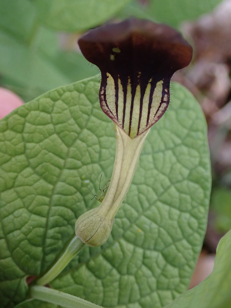 L'aristoloche pistoloche a des feuilles ovales ou triangulaires et non presque rondes. L'extérieur du tube des fleurs est de couleur marron et non jaune.