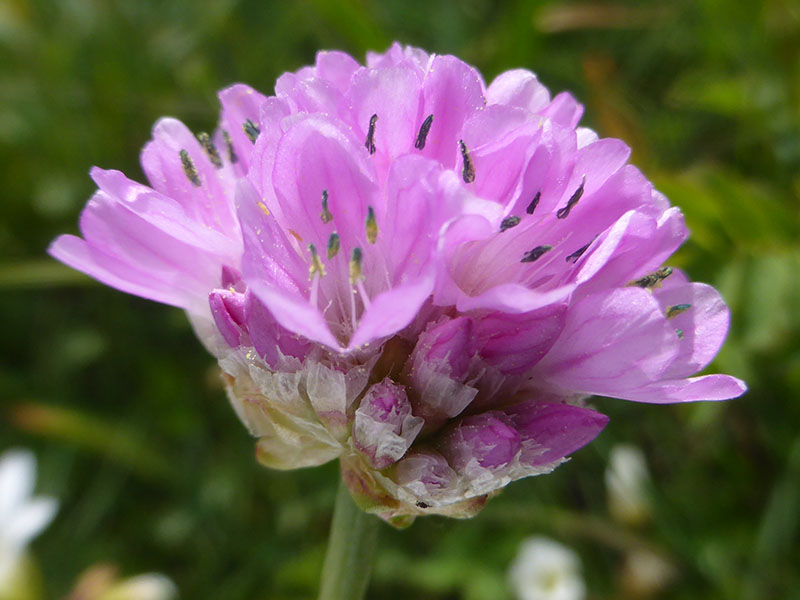Plante poussant dans les éboulis et les pelouses de haute montagne plutôt sur terrain acide et humide. L'inflorescence est une cyme capituliforme de petites fleurs roses à 5 pétales. Elle possède un involucre couleur fauve avec des folioles presque entièrement scarieuses. Les feuilles forment une touffe dense. La tige lisse présentent une gaine brun rougeâtre dans sa partie supérieure.