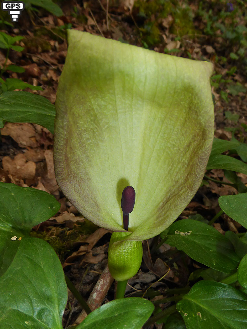 Plante vivace caractéristique poussant dans les bois humides. La fleur possède une grande spathe blanche avec (ou non) des bords violacés qui entoure une massue brun violet. Comme tous les arums, les minuscules fleurs sans pétales sont groupées en épi sur le spadice, les fleurs mâles en haut, les femelles à la base. Toute la plante est toxique, particulièrement les baies. Les photos de la plante ont été prises dans la Creuse.Toute la plante est toxique, particulièrement les baies.
