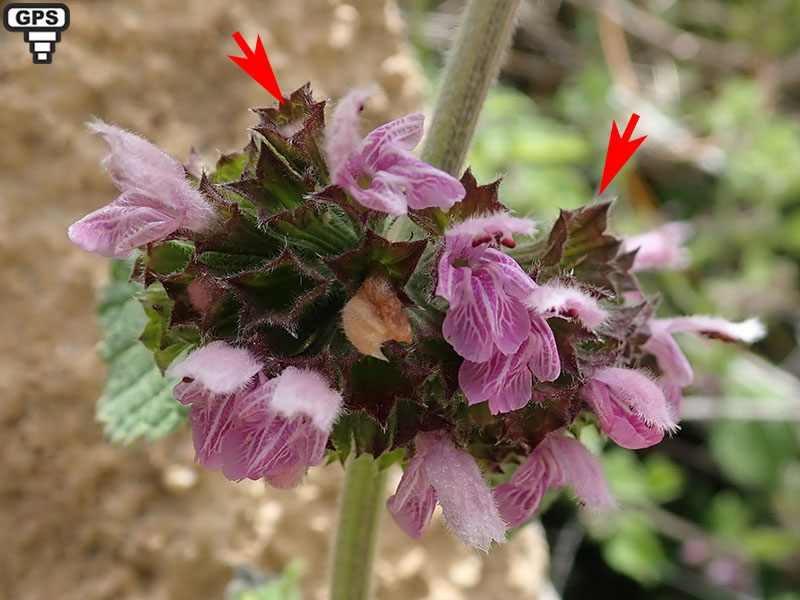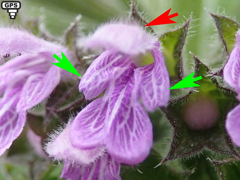 Le lamier pourpre se rencontre aux mêmes époques de l'année mais ses feuilles supérieures sont souvent pourpres, sa corolle bilabiée n'a pas de lobes latéraux sur la lèvre inférieure (éventuellement une dent) et le dessus de sa lèvre supérieure est peu velu.