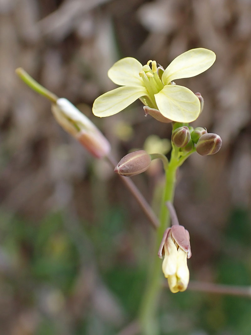 Le chou de Tournefort est une plante annuelle rameuse originaire du Sud et de l'Est du bassin méditerranéen. Elle s'est introduite en France mais ne semble pas y être invasive. Elle prospère dans les lieux sableux, près des plages, des routes et dans les endroits incultes. C'est une plante ramifiée qui possède une racine pivotante. Les tiges aériennes sont couvertes d'une pilosité raide à la base. Ses feuilles basales forment une rosette à la base, elles sont souvent en partie rougeâtres quand il fait froid. L'inflorescence est un racème de petites et discrêtes fleurs à quatre pétales jaunes et à sépales rougeâtres tenues par un pédoncule assez long (de la longueur des sépales). Les pétales sont veinées de lignes d'un jaune plus marqué.
