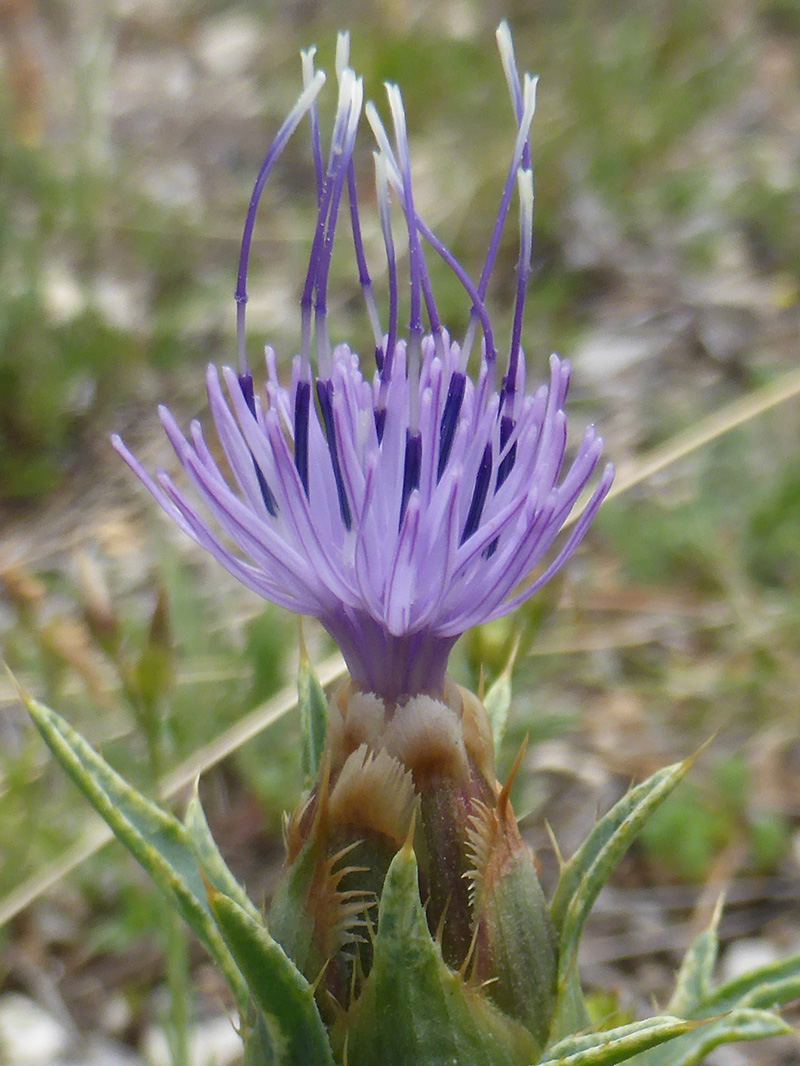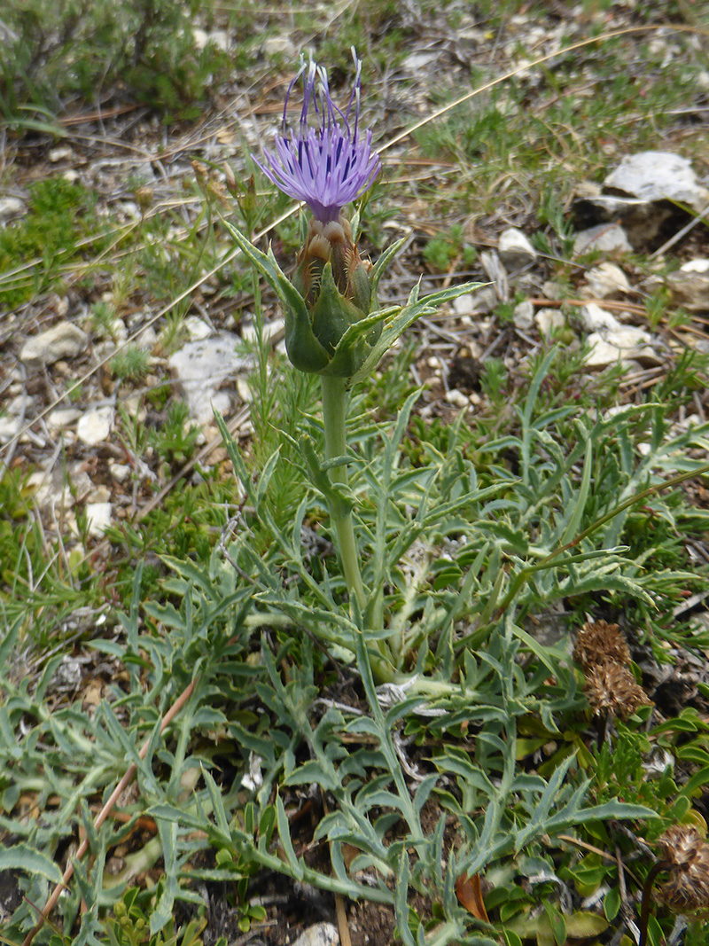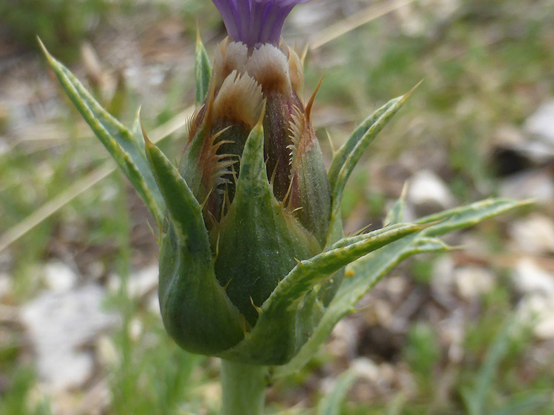 Plante provençale, qui croît dans les garrigues, les jachères et les pâturages calcaires, la cardoncelle des Montpelliérains est une plante glabre à tige très courte. Ses feuilles basales ainsi que celles de la tige sont découpées en lobes étroits. Elles sont épineuses. L'involucre est ovoïde avec des folioles coriaces terminées par une longue pointe épineuse. Les fleurs toutes tubulées sont bleu clair avec un style plus foncé dépassant du tube de la corolle. On la trouve sur les côteaux arides de la région méditerranéenne ainsi que sur le bord des chemins herbeux et secs.