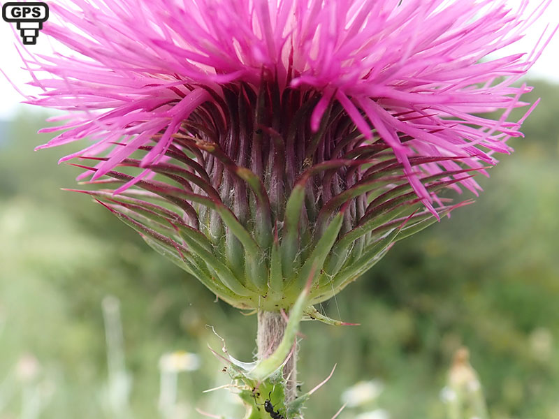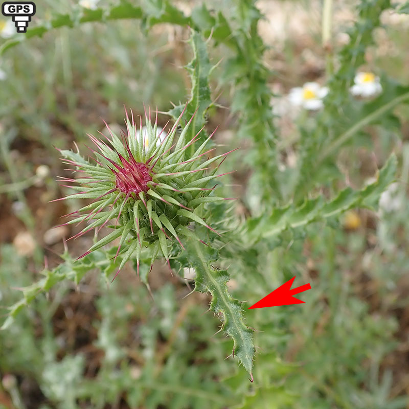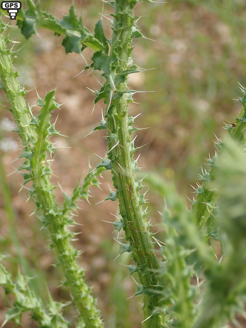 Le chardon noircissant est une plante méditerranéenne polymorphe poussant dans les terrains incultes. La tige est bordée d'ailes épineuses sur toute sa longueur, mais il peut ne pas y en avoir entre les dernières feuilles et le capitule. Les feuilles sont constituées de lobes épineux triangulaires. Cette plante ne produit qu'un capitule en haut de la tige. Celui-ci est de forme spérique avec les fines bractées de l'involucre se repliant vers l'extérieur.