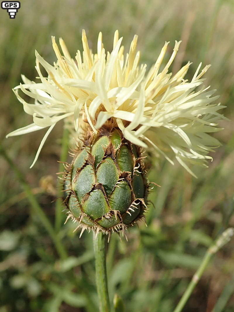 Plante vivace à tige florifère rameuse dans sa partie supérieure avec des rameaux dressés ou presque étalés, la centaurée des collines affectionne les terrains calcaires des champs incultes ou des friches du Midi méditerranéen où elle est assez commune en été. Elle produit d'assez gros capitules à fleurs externes rayonnantes d'un beau jaune soufre. L’involucre, presque globuleux, est composé de bractées vertes à cils épineux, avec, au sommet, un appendice brun terminé par une pointe. La plante se multiplie par des bourgeons produits sur la tige souterraine.