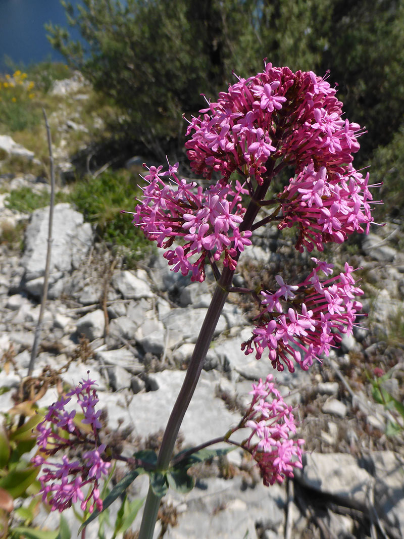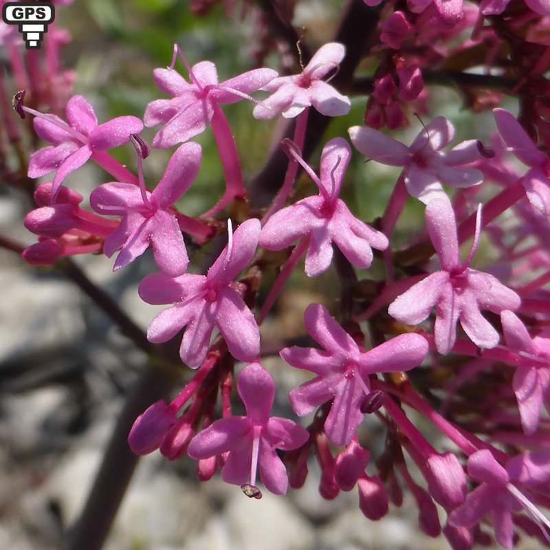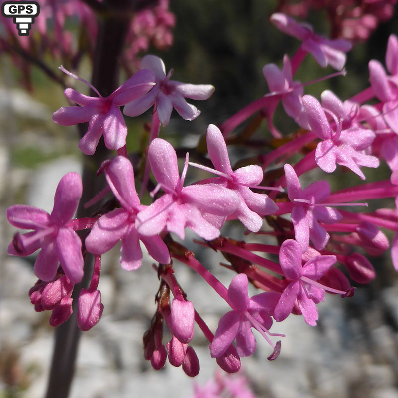 De plus en plus commune dans le Sud de la France, la centranthe rouge profite des petits espaces entre les rochers ou dans les vieux murs pour se développer. C'est une plante vivace, glabre et rameuse à tiges creuses. Les fleurs roses presque rouges (rarement blanches) sont groupées en corymbes, denses au démarrage de la floraison et plus aérés ensuite. Chaque fleur possède une longue corolle en tube avec un éperon étroit allongé et aigu, dirigé de haut en bas, presque parallèlement à l’ ovaire. Il n'y a qu'une seule étamine et un seul style dépassant de la corolle. Cette plante, préférant les terrains, calcaires attire de nombreux insectes dont quelques papillons.