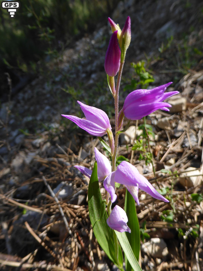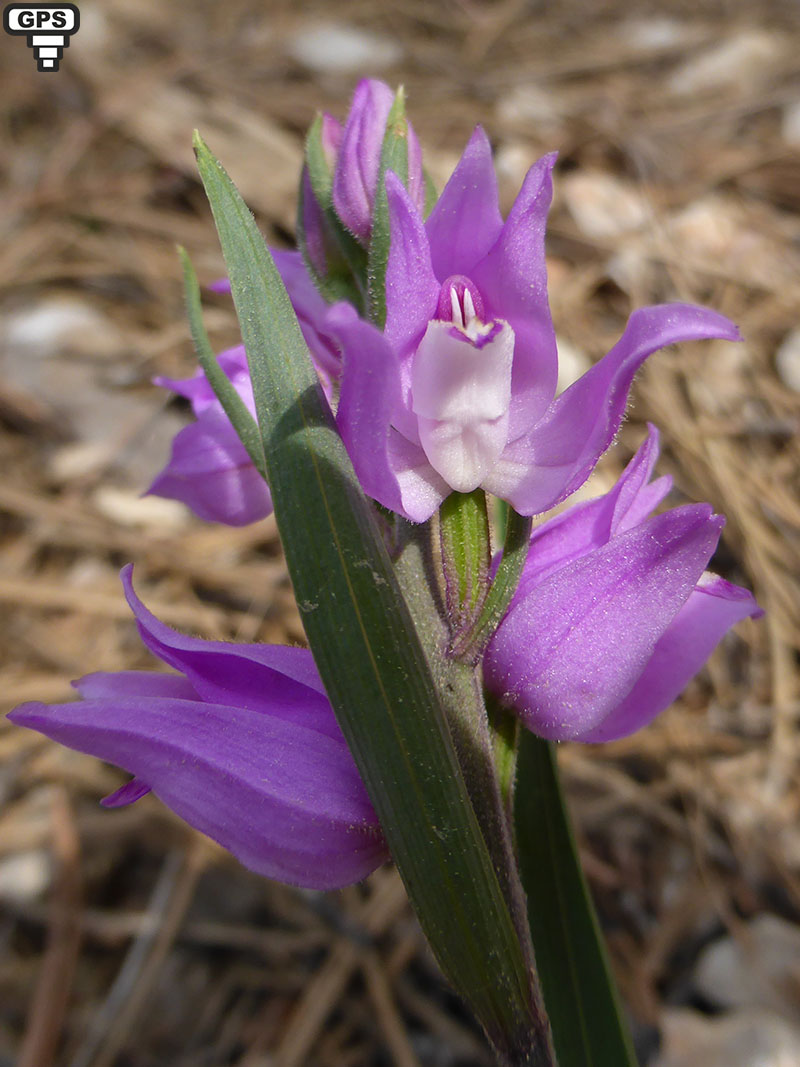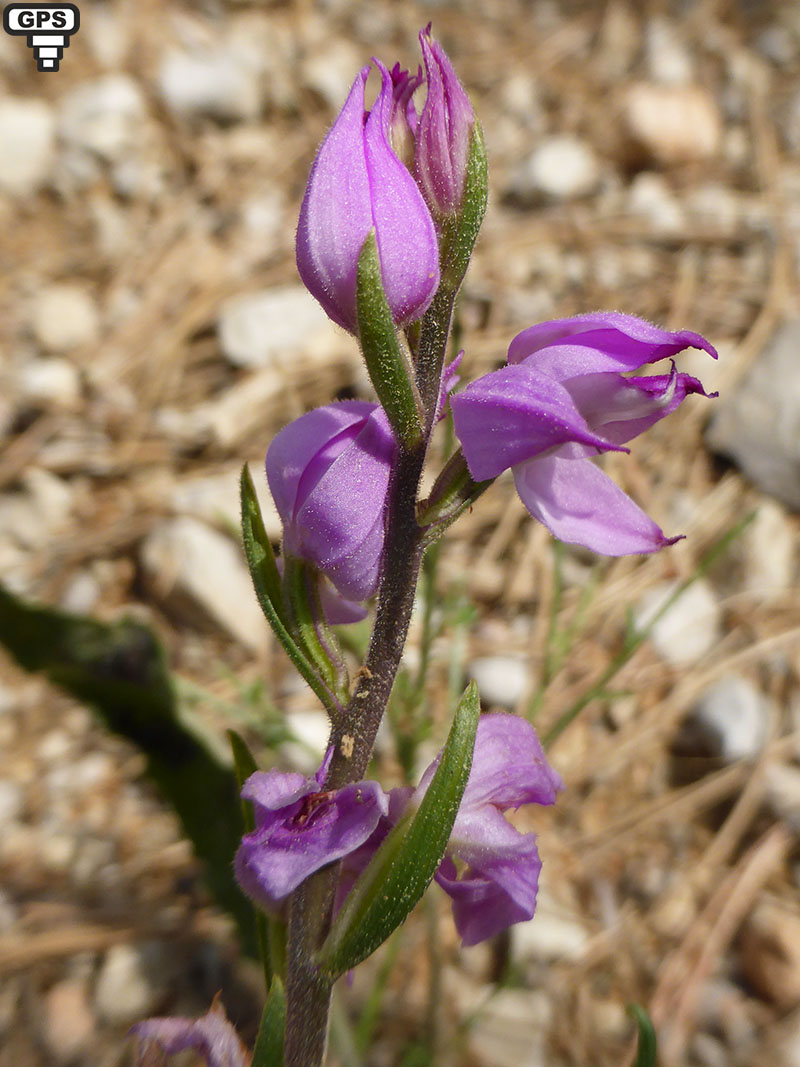 Cette orchidée produidant un épi simple de cinq à quinze fleurs ressemblant à la céphalanthère à feuilles étroites mise à part la couleur (les fleurs de celui-ci sont blanches). Elle est présente dans les forêts claires et sèches presque partout en France (sauf le Nord-Ouest). Les fleurs forment un épi lâche munis de bractées étroites et aiguës ressemblant à de petites feuilles couvertes de petits poils glanduleux. Les sépales et les pétales sont aigus et plus ou moins refermés sur le labelle donnant l'impression que la fleur n'est pas complètement épanouie.
