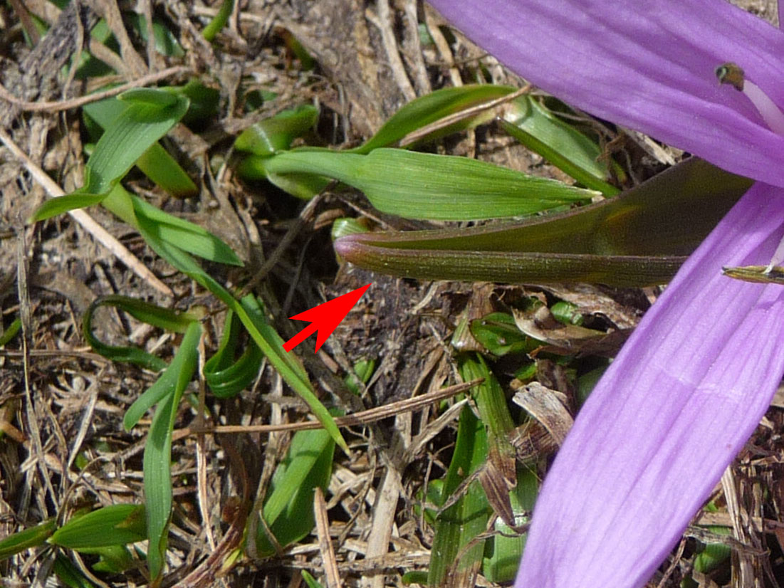 Ce sont les feuilles étalées et en gouttière qui permettent de différencier rapidement le bulbocode de printemps des crocus. Les crocus n'ont que 3 étamines et leurs styles ne sont pas soudés.