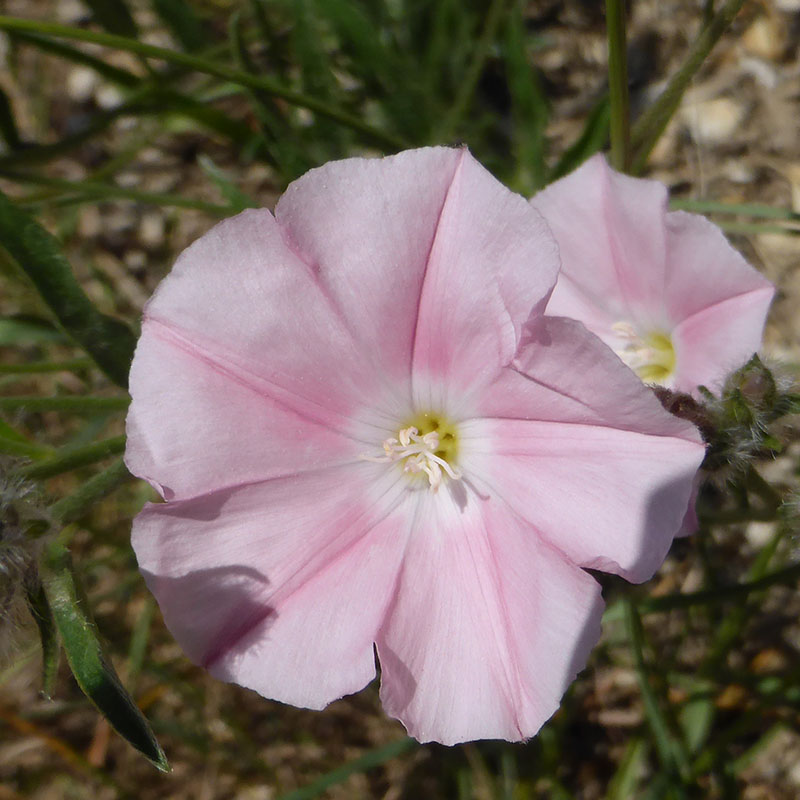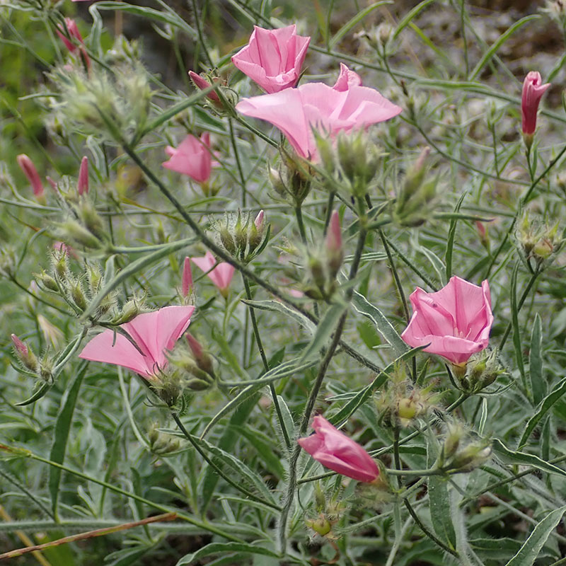 Le liseron de Biscaye est une plante vivace entièrement couverte de poils étalés qui se rencontre dans les sous-bois, les pelouses arides ou les rocailles du Midi de la France (sur sols calcaires). Ses tiges sont redressées et ne s'enroulent pas. Les feuilles sont très allongées avec des nervures bien visibles, elles sont velues sur les deux faces. Les supérieures sont aiguës et sessiles, les inférieures obtuses et atténuées en pétiole. Elle produit de belles fleurs roses pédicellées sur les rameaux et formant une panicule lâche et étalée. Les sépales sont ovales-allongées, aiguës et velus. La corolle mesure environ trois fois la longueur du calice et présente extérieurement des lignes de poils disposées longitudinalement. La tige souterraine est un peu ligneuse et forme des bourgeons qui perpétuent ou multiplient la plante.