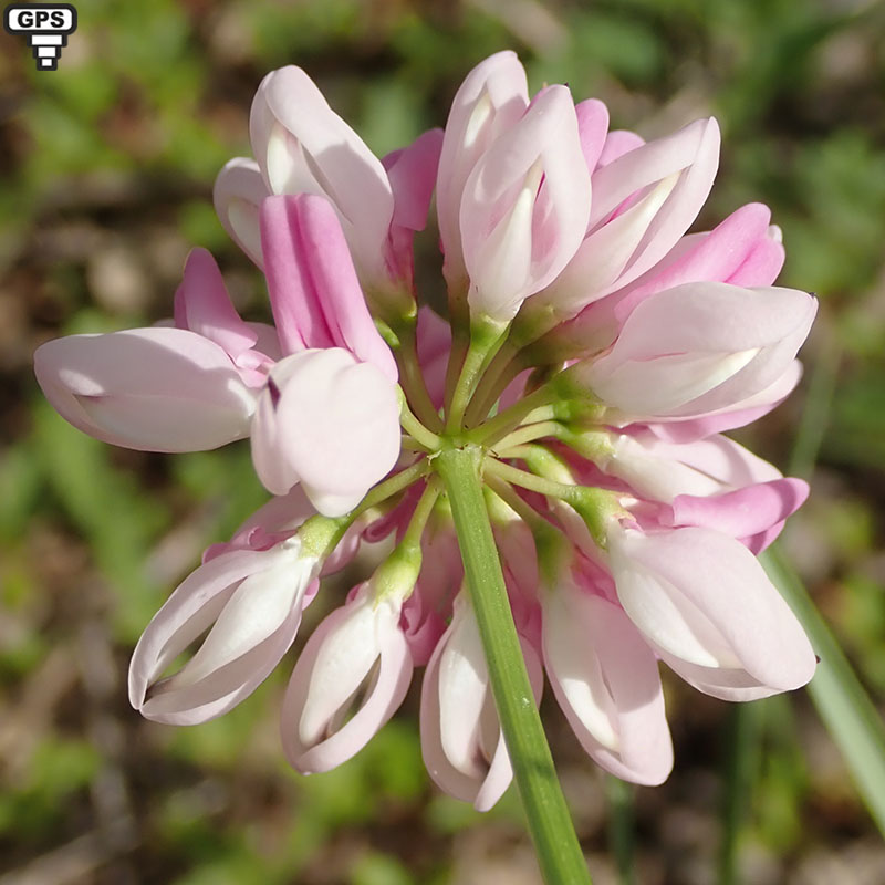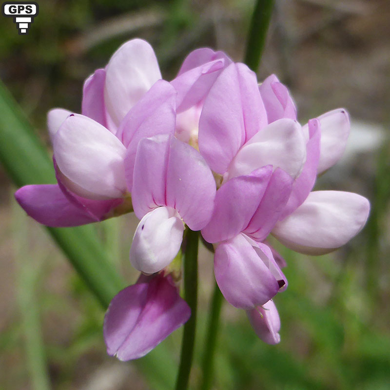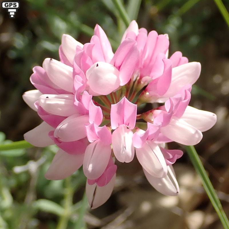 La coronille bigarrée prospère dans les sous-bois, les prés, les prairies calcaires jusqu'en moyenne montagne dans presque toute la France métropolitaine. C'est une plante vivace glabre qui se multiplie par des bourgeons nés sur les racines. Ses tiges sont couchées ou un peu redressées et laissent apparaître de nombreuses couronnes de fleurs colorées de rose, de blanc et de pourpre. Le calice est glabre, en cloche, avec 5 dents inégales. Elles présentent 10 étamines (9 soudées, la dixième libre). Celles-ci sont groupées en ombelle (10 à 20 par ombelle) au bout de pédoncules dépassant largement les feuilles. Celles-ci, imparipennées et munies de stipules très petites et étroites, sont composées de 9 à 23 folioles. Les rameaux florifères sont toujours plus longs que la feuille à l'aisselle de laquelle ils poussent. C'est la seule coronille de France qui ne soit pas jaune.