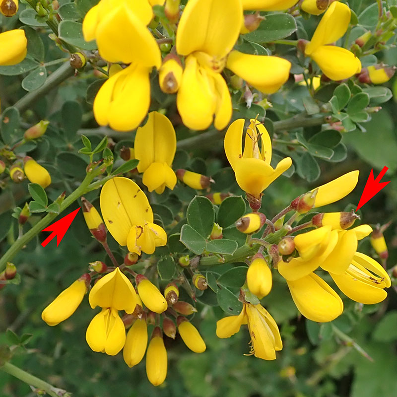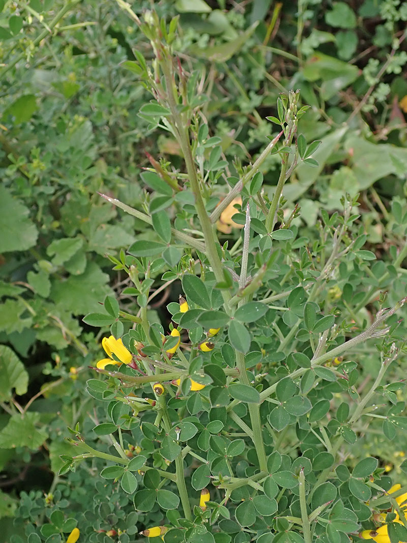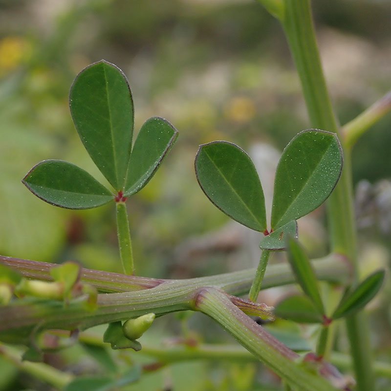 Le lotier faux-cytise pousse également près des côtes, mais c'est une plante gazonnante non épineuse qui ne dépasse pas 40 cm de hauteur. Le calice de ses fleurs est vert et non brun-rouge.